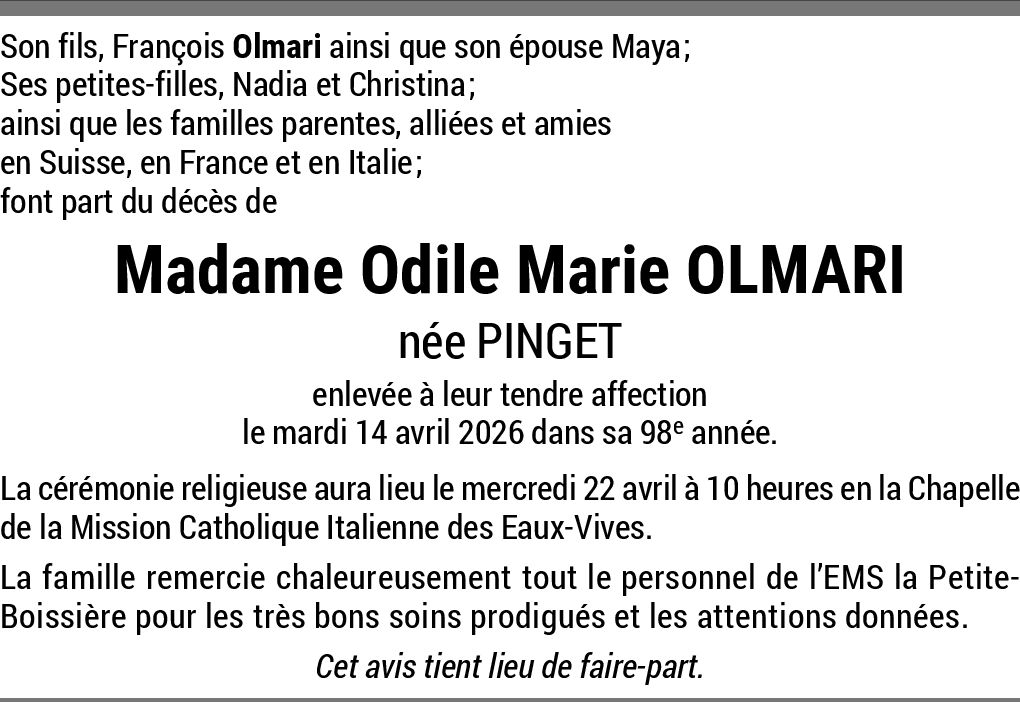 Odile Marie Olmari-Pinget