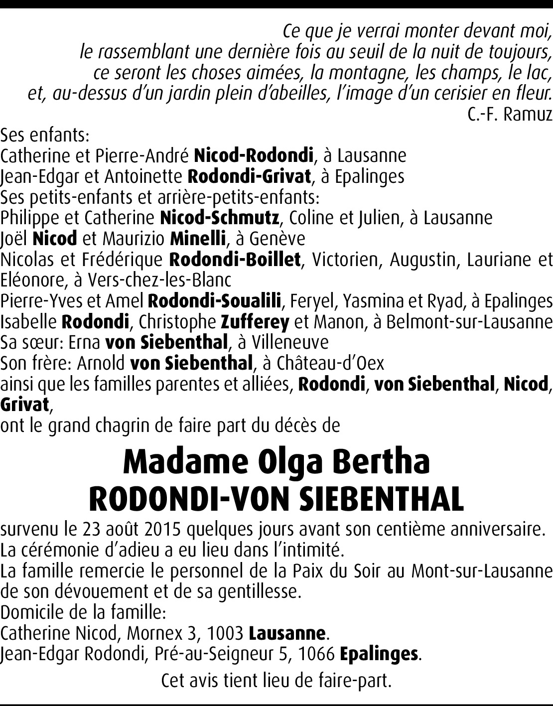 Olga Bertha Rodondi-Von Siebenthal