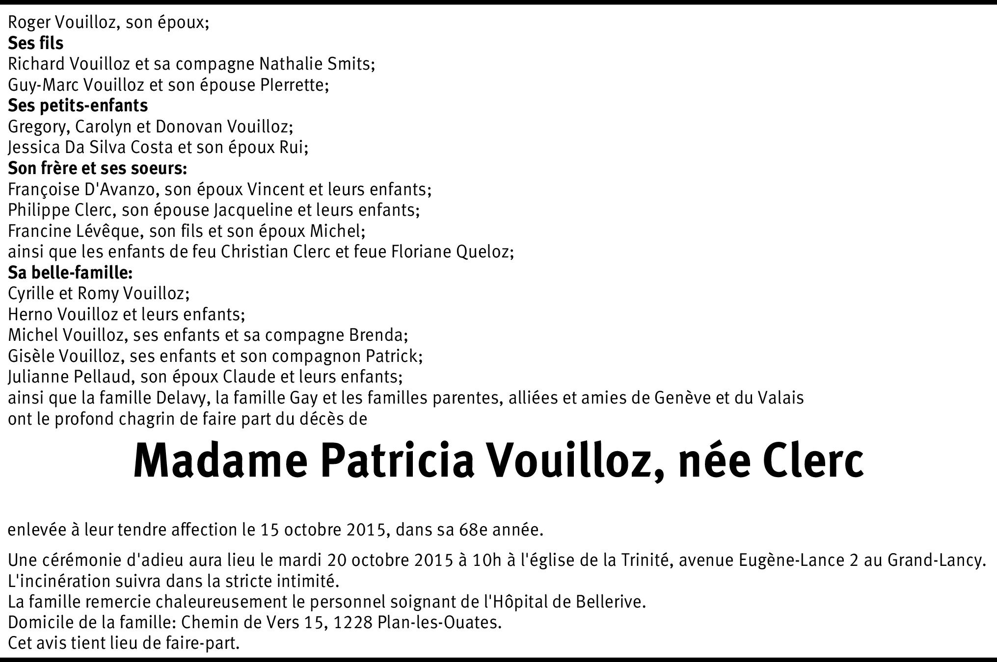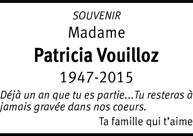 Il y a plus de 4 ans Signaler Je suis infiniment désolée, je ne savais pas, je viens d'apprendre le décès de Patricia, et je tiens à vous exprimez toute ma sympathie à toi Roger et à tes fils. Je garderais un très bon souvenir d'Elle. Je vous embrasse Michèle De la part de Michèle Lassal