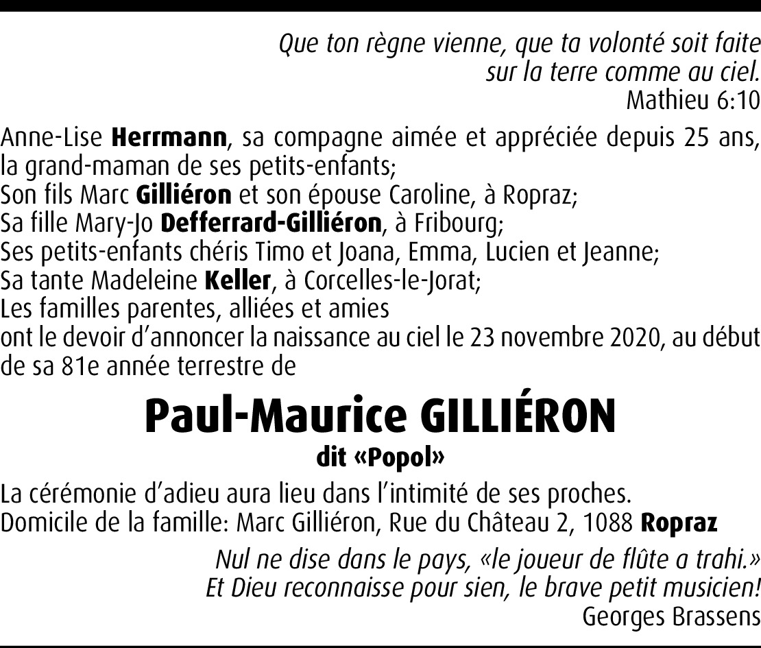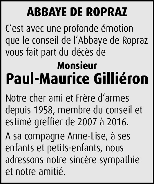 Les amis de Jorat souviens-toi se joignent à moi pour vous faire part de toute notre sympathie. En pensées avec vous en ces jours de triste séparation.