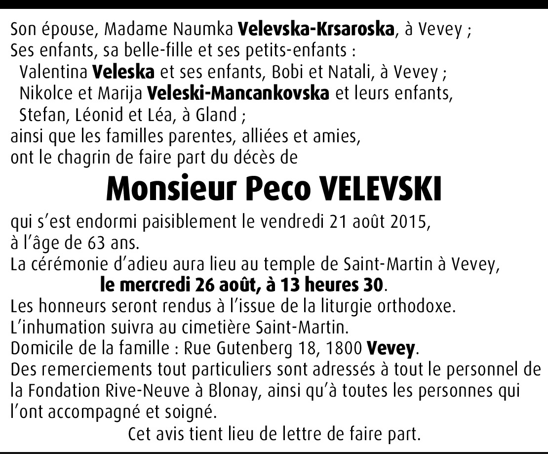 Il y a plus de 4 ans Signaler Cher Nikolce, En pensée avec vous et votre famille. Sincères condoléances. Patrick Stehlé. De la part de Patrick Stehlé