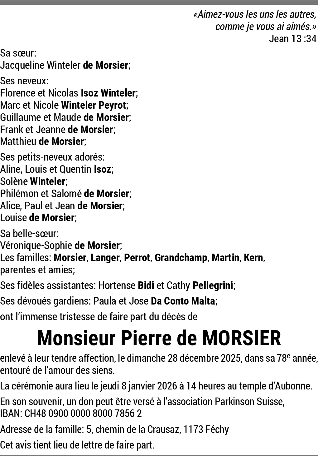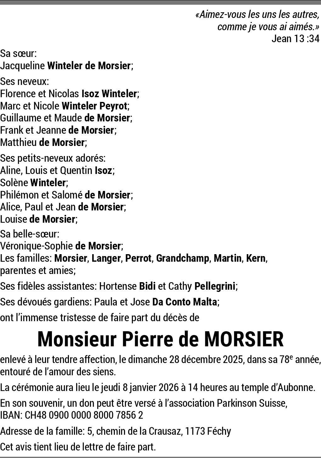 Chère famille,