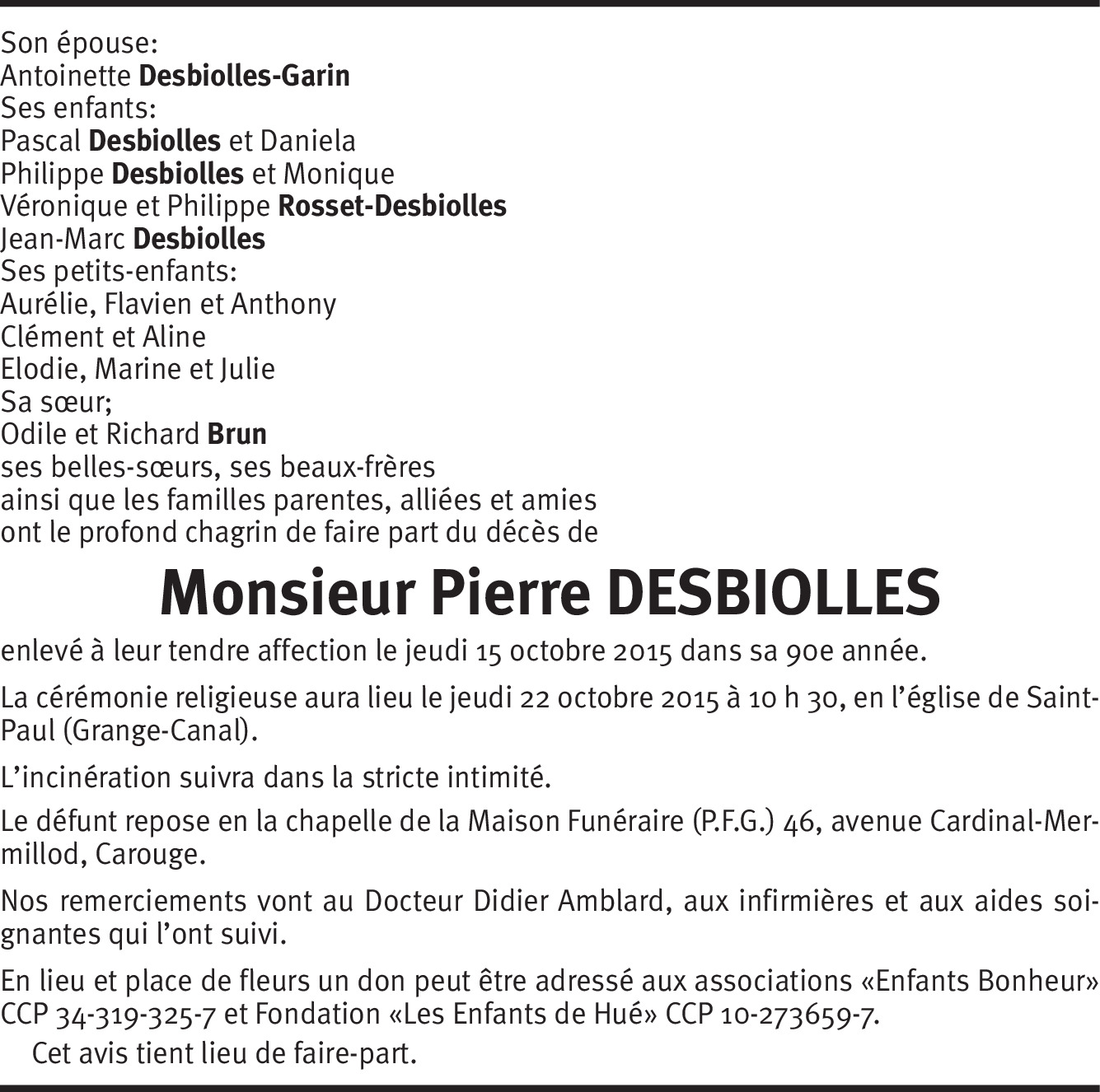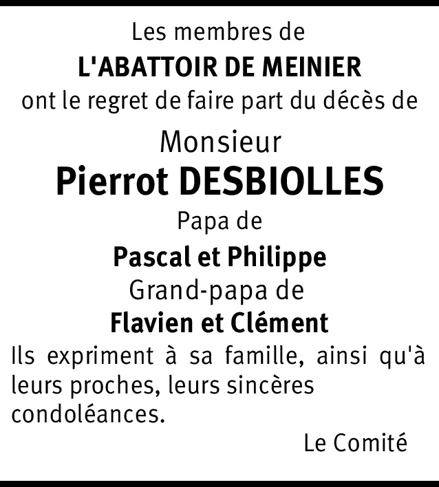 Toutes nos pensées vers vous sont tournées pour vous apporter un peu de réconfort dans l'épreuve que vous vivez. Sachez que dans le deuil vous n'êtes pas seuls puisque vous pouvez compter sur notre sincère amitié. Veuillez accepter nos plus sincères condoléances.