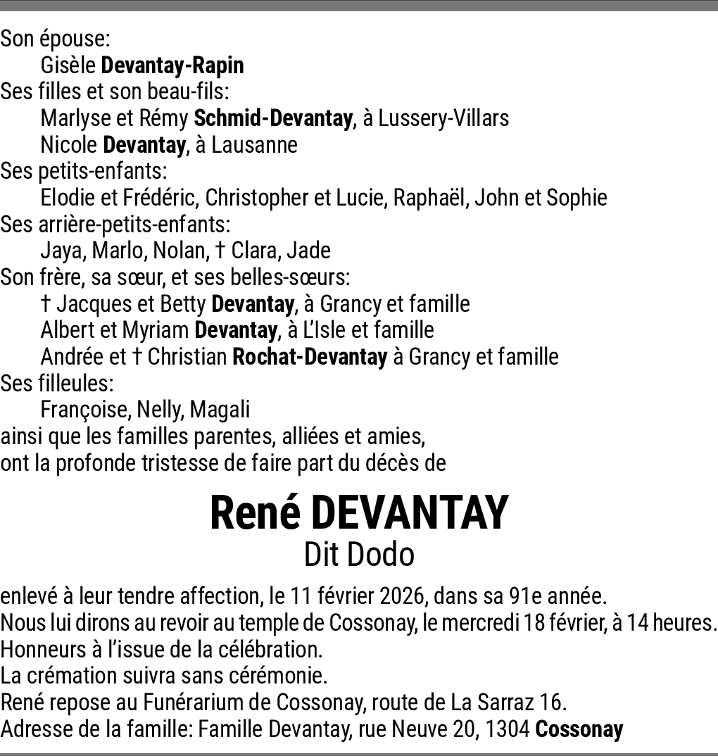 13.02.2026 Signaler En pensée avec vous en ses moments de séparations De la part de Gerald et Liliane