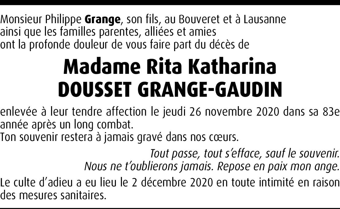 Il y a plus de 4 ans Report Phillippe Je sais comme ta maman et toi étiez proches. Même si l'on ne se voyait plus je suis désolée d'apprendre ce malheur Je suis de tout coeur avec toi. Mes sincères condoléances. Muriel De la part de Muriel Dousset