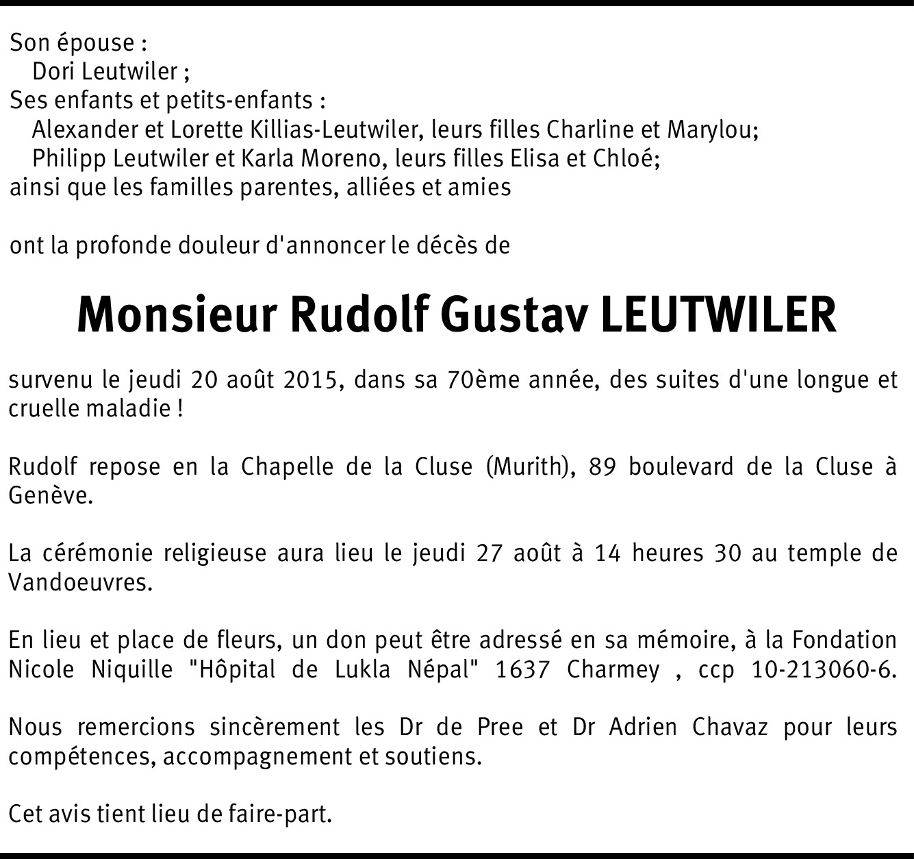 Vous souhaitez rester informé des nouveaux avis et condoléances pour ce défunt ?