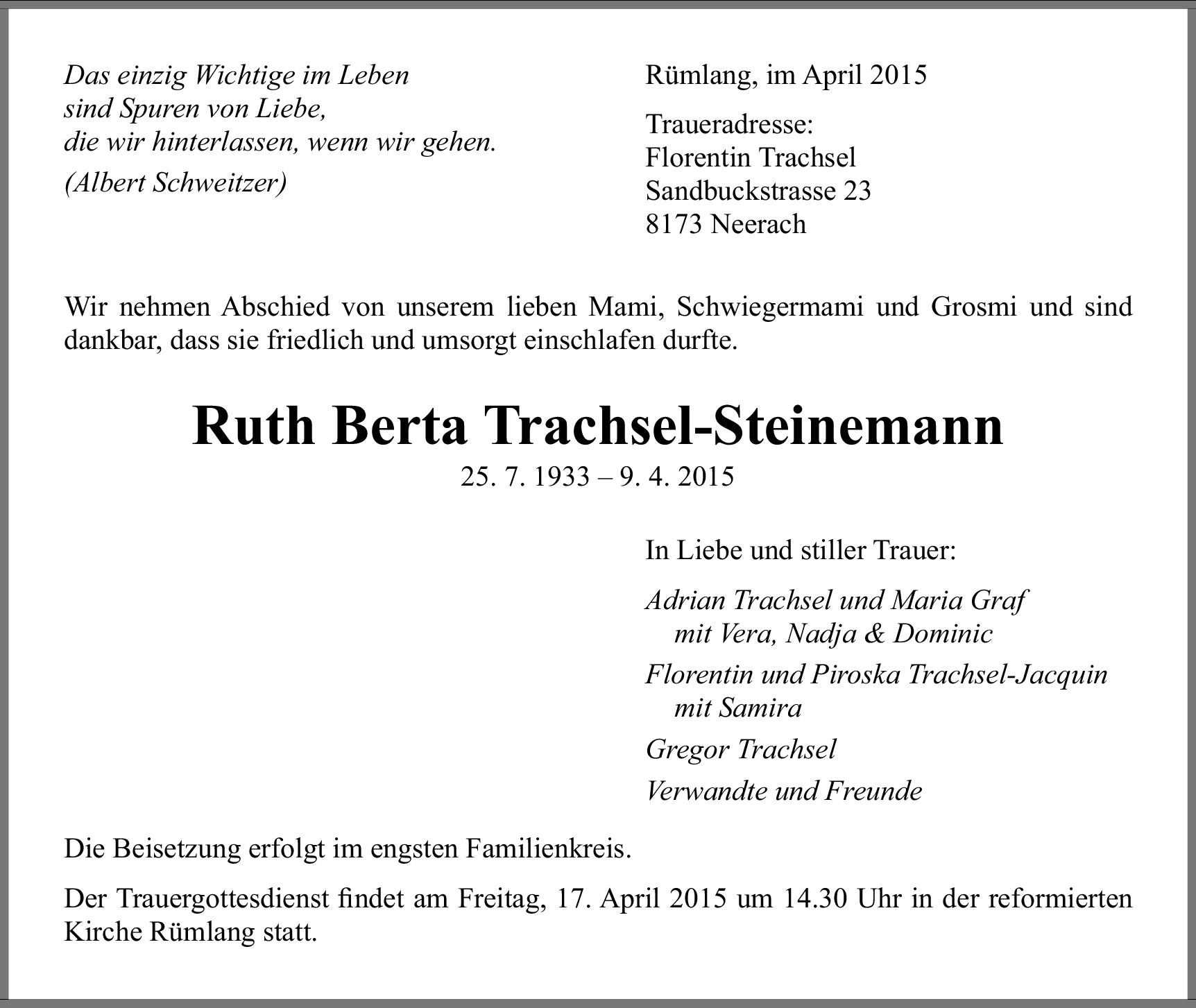 Ruth Berta Trachsel-Steinemann