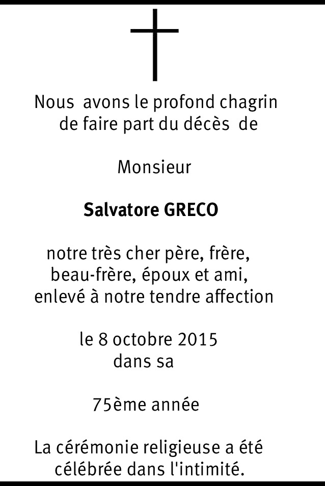 Il y a plus de 4 ans Signaler C'est avec une profonde tristesse que je viens d'apprendre le décès de Salvatore, il était simplement exceptionnel. A toute sa famille je vous présente mes sincères condoléances et toute ma sympathie. Carmen De la part de Carmen Mendez