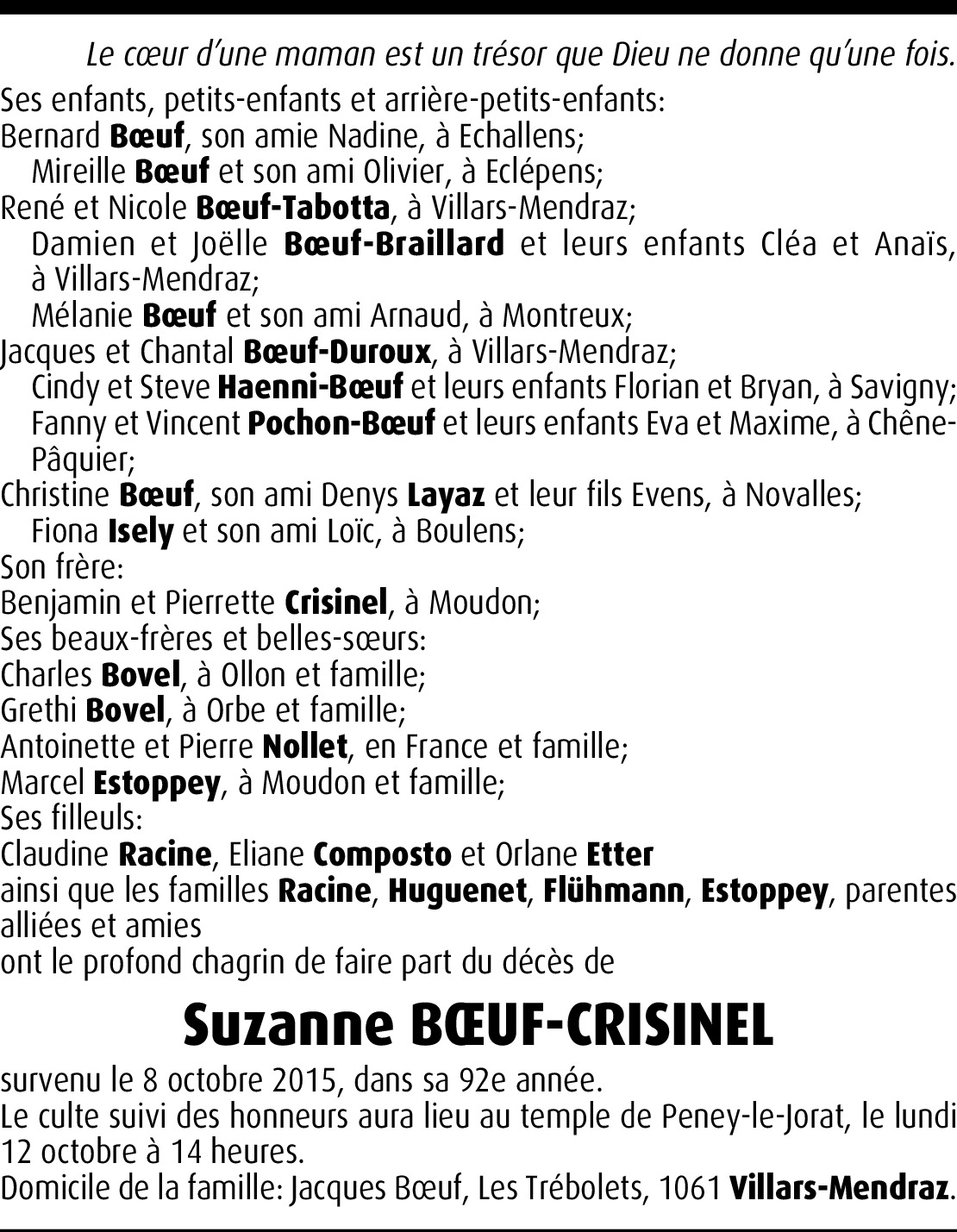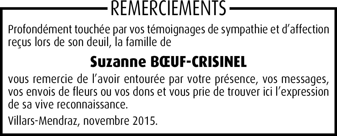 C'est avec tristesse que nous avons appris le décès de Suzanne.