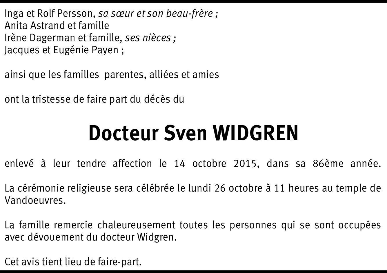 Im Rahmen unsere Jahresversammlung würden wir gerne dem Verstorbenen gedenken. Wäre es möglich, für diesen Zweck einen kleinen Lebenslauf von Herrn Widgren zu erhalten?