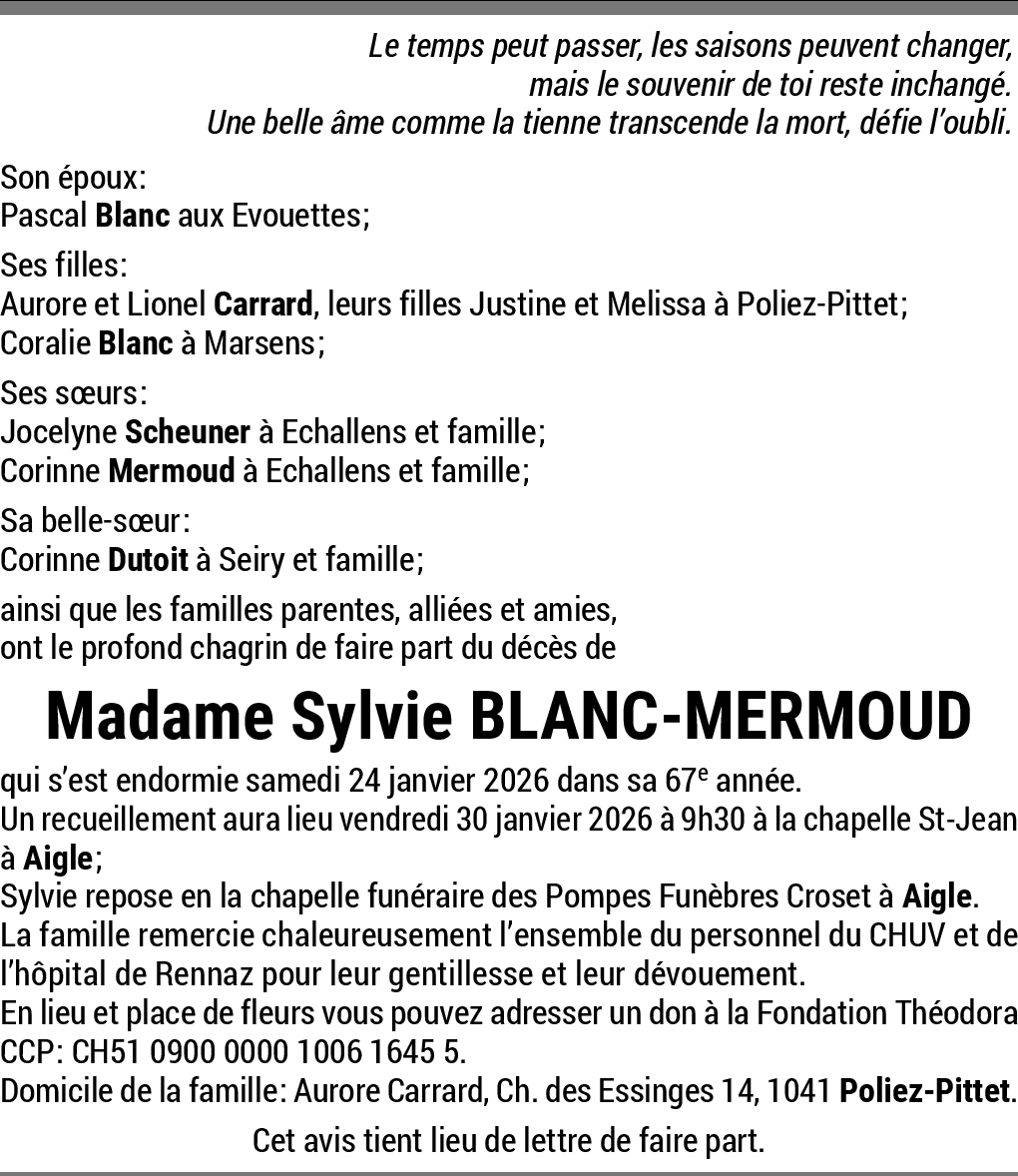 C est avec une profonde tristesse que nous avons appris le décès de Sylvie