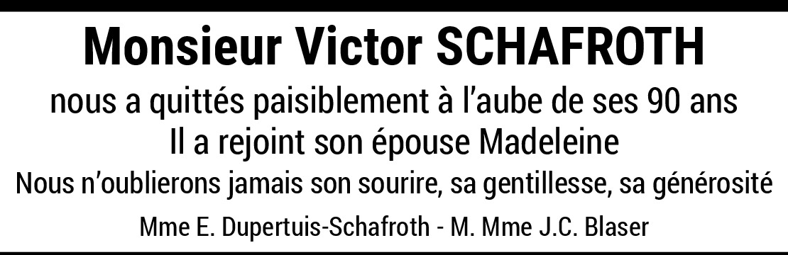 04.07.2023 Signaler Nous garderons un souvenir lumineux de Victor que nous aimions beaucoup. De la part de Rossy Taddeo