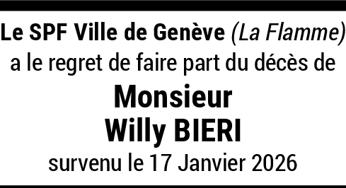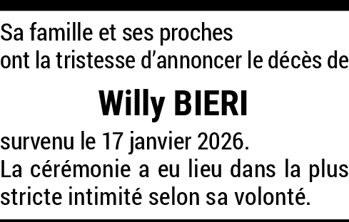 26.01.2026 Signaler Sincères condoléances à la famille.Repose en paix Willy. De la part de Myriam Berset