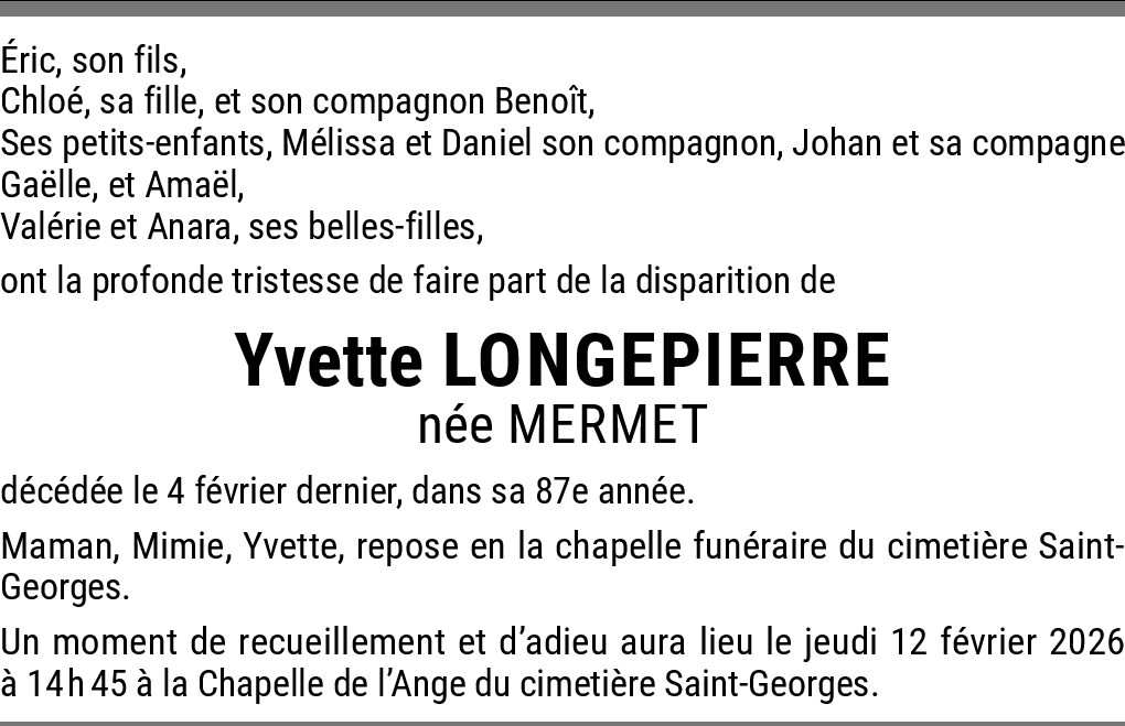 07.02.2026 Signaler Toutes mes pensées pour Yvette qui a été ma première collègue lorsque je suis rentrée dans cette grande maison qu'était la FSP, devenue FER et mes condoléances à toute sa famille. Jeannine Sébillot De la part de Sébillot Jeannine