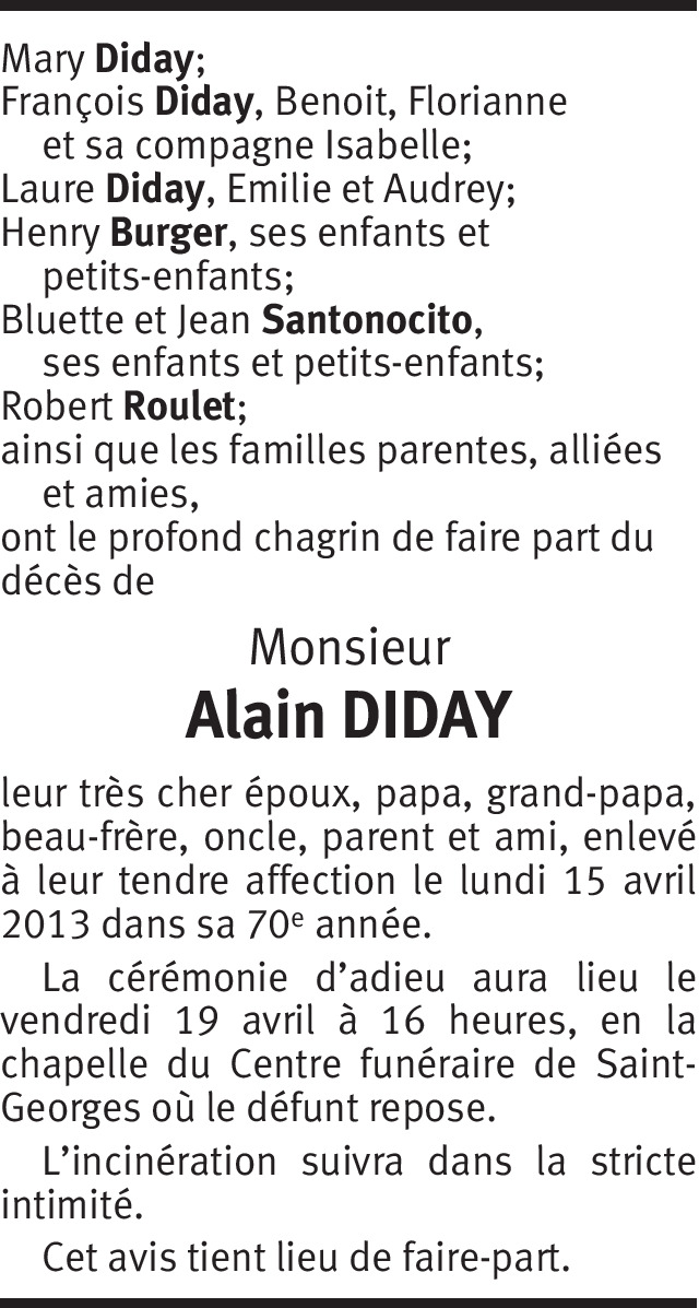 C'est avec grand chagrin que nous avons pris connaissance de la nouvelle. Par ce présent message, nous aimerions vous présenter nos sincères condoléances. Nous prions fort pour que l'âme de Monsieur retrouve toute sa quiétude.
