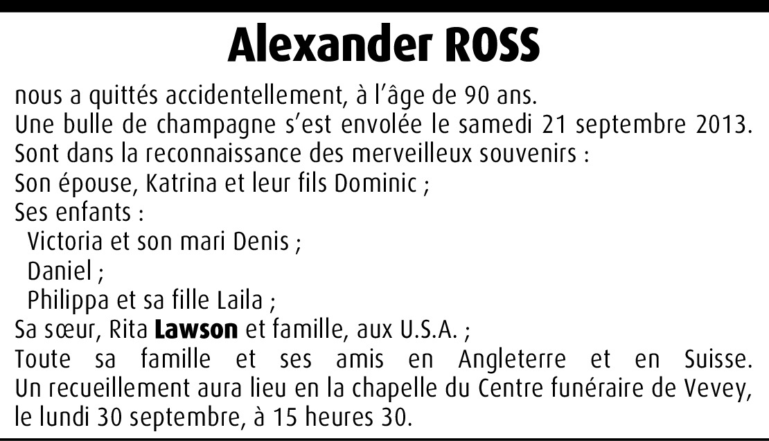 We are so sorry for this great loss. Alex will always stay in our minds as a very special man, full of life. Now that he is no longer with us you will only have memories, but we know they are all wonderful. These will hopefully keep him alive in your minds for the rest of your days. Our sincere condolences to you all. We shall have a glass of champagne on Alex life on Monday and be with you in our thoughts.