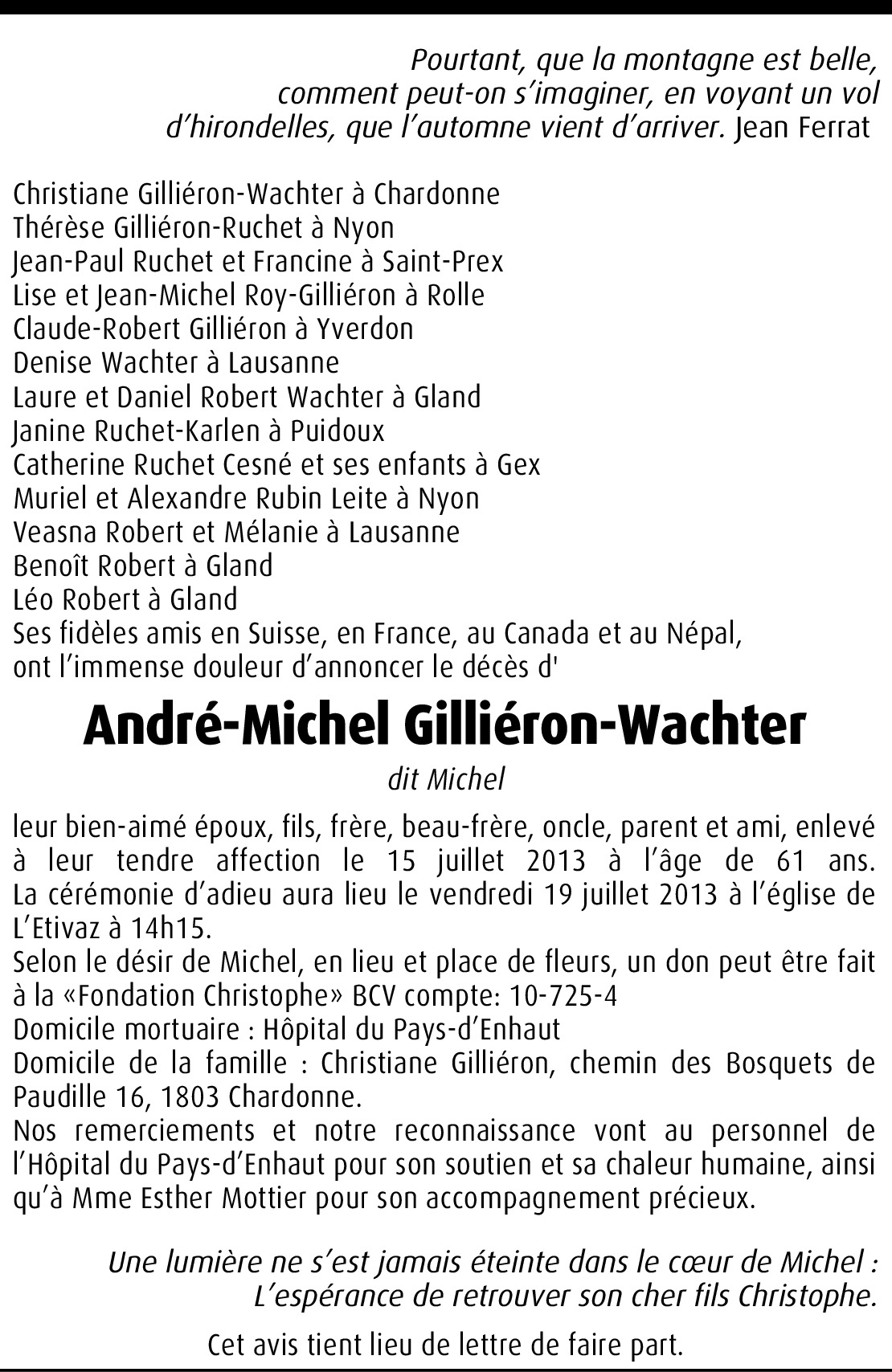 Vor mehr als 4 Jahren Melden C'est avec tristesse que nous apprenons le décès de Michel. Nos sincères condoléances dans ce pénible moment. Von Mady et Michel Allenbach