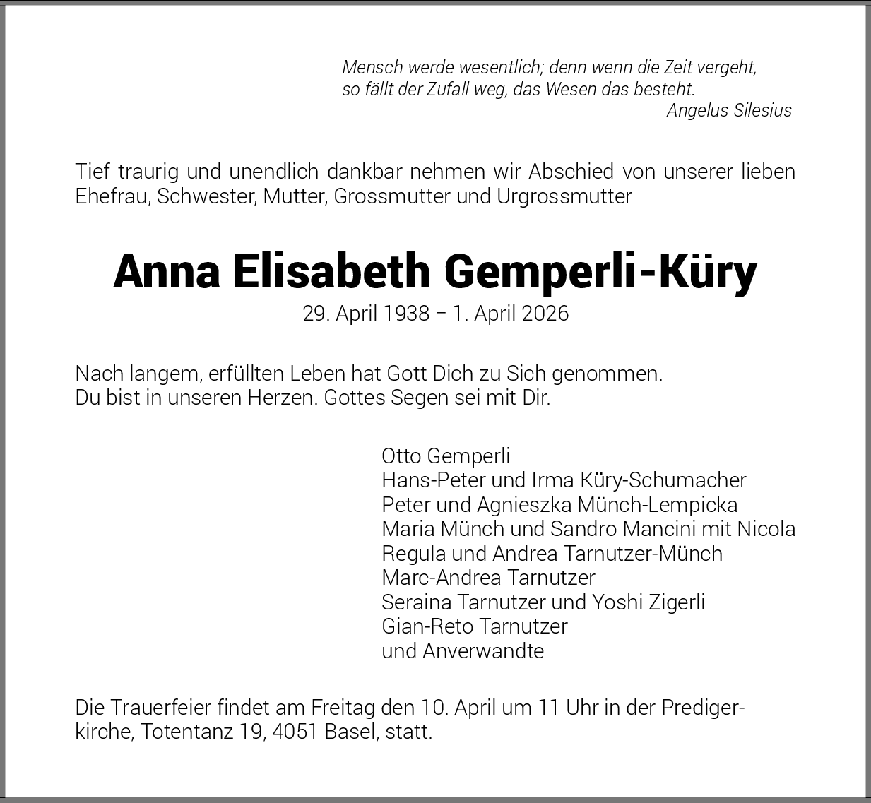 Anna Elisabeth Gemperli-Küry
