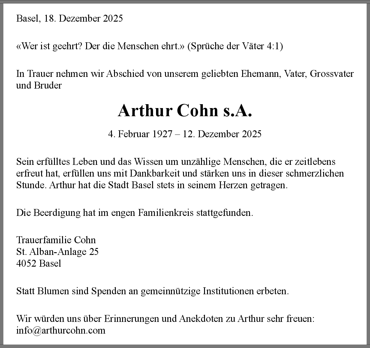 Möchten Sie über neue Todesanzeigen und Kondolenzen für diesen Verstorbenen informiert werden?