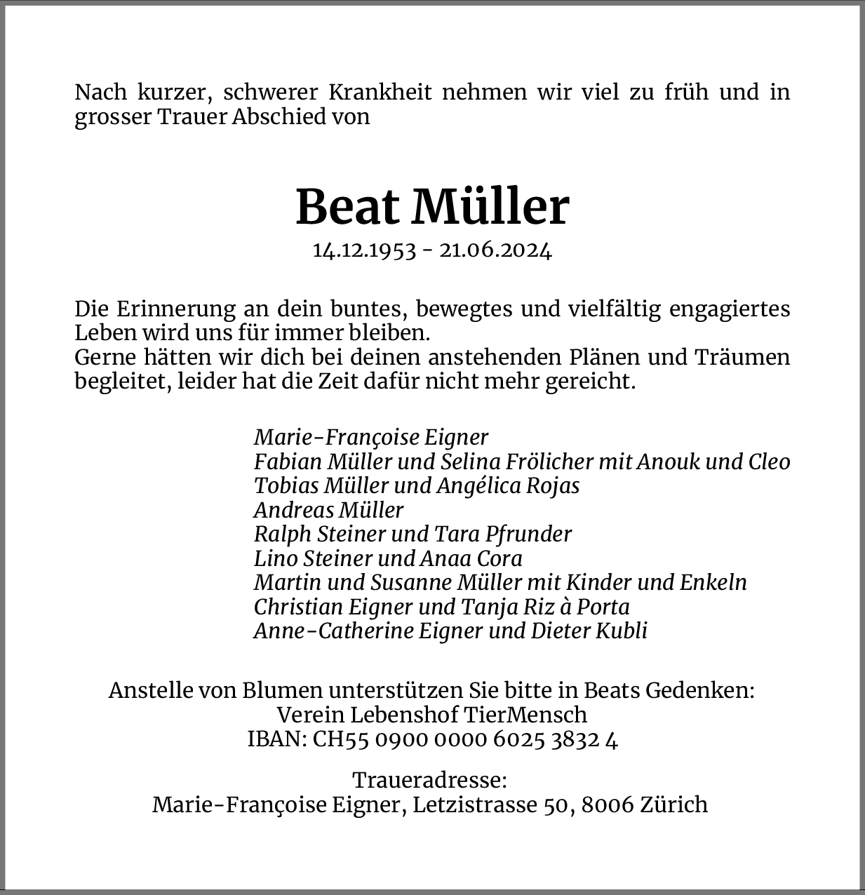 Möchten Sie über neue Todesanzeigen und Kondolenzen für diesen Verstorbenen informiert werden?
