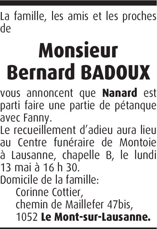 Vor mehr als 4 Jahren Melden J'ai été très triste d'apprendre le départ de Nanard, à toute sa famille et sa compagne je présente mes plus sincères condoléances. Repose en paix Nanard. Von Liliane Richard