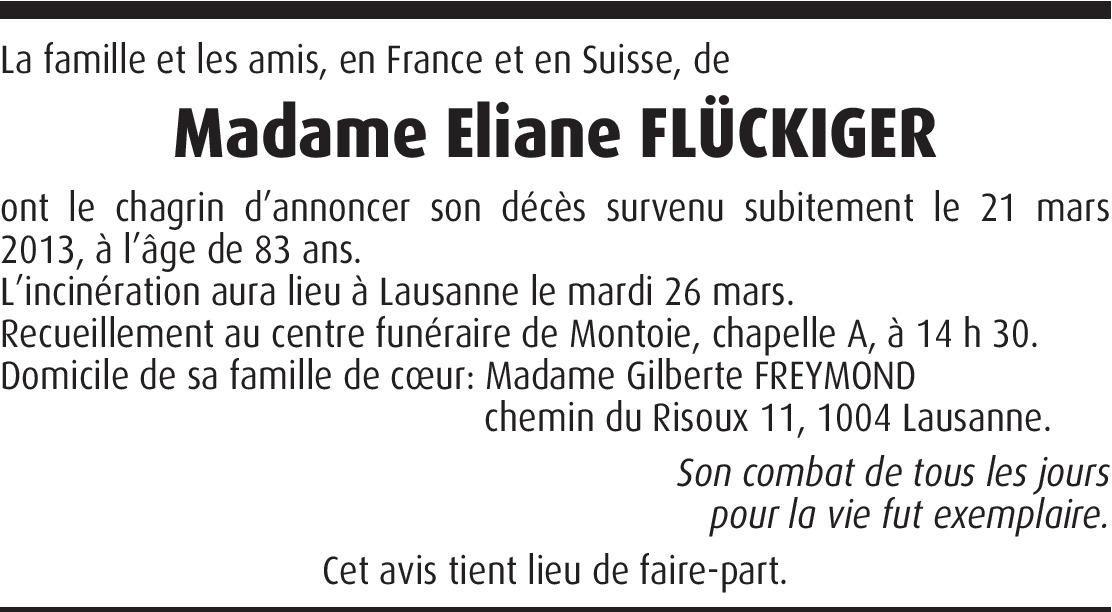 Vor mehr als 4 Jahren Melden Repose en paix ma tante, dommage que nous n'ayons pas eu plus souvent l'occasion de partager. Von Raymond Fiuckiger