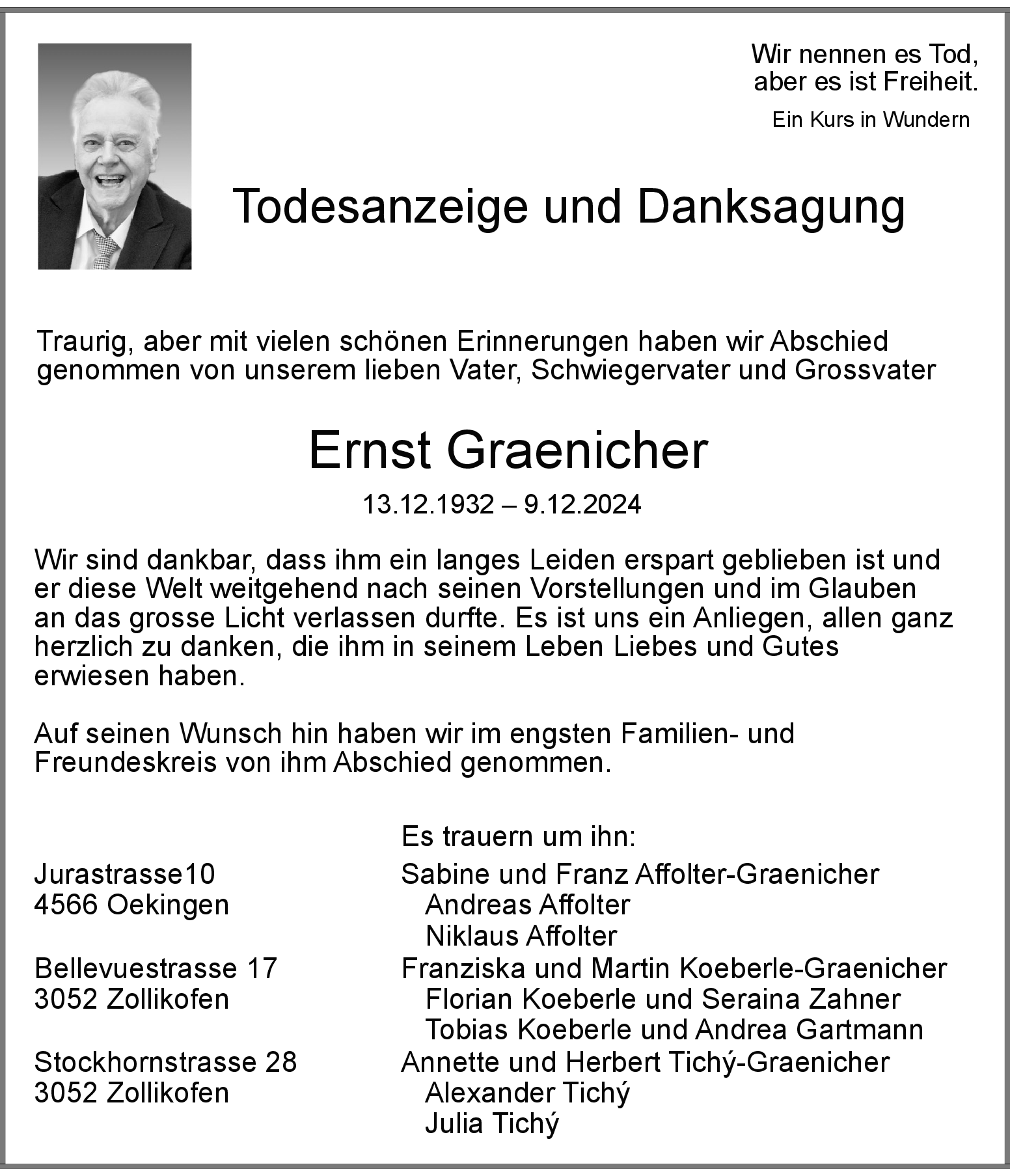Möchten Sie über neue Todesanzeigen und Kondolenzen für diesen Verstorbenen informiert werden?