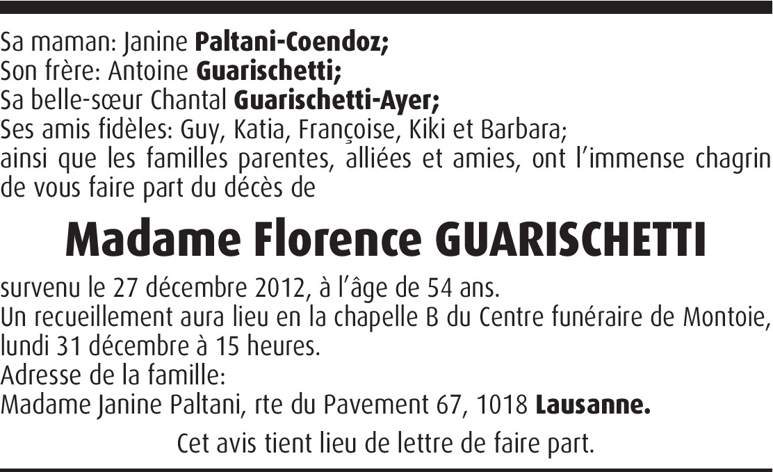 Vor mehr als 4 Jahren Melden Quelques pensées pour Florence, sa famille, ses amis, de la part d'une très ancienne collègue de travail télégraphiste. Von Catherine Lenoir