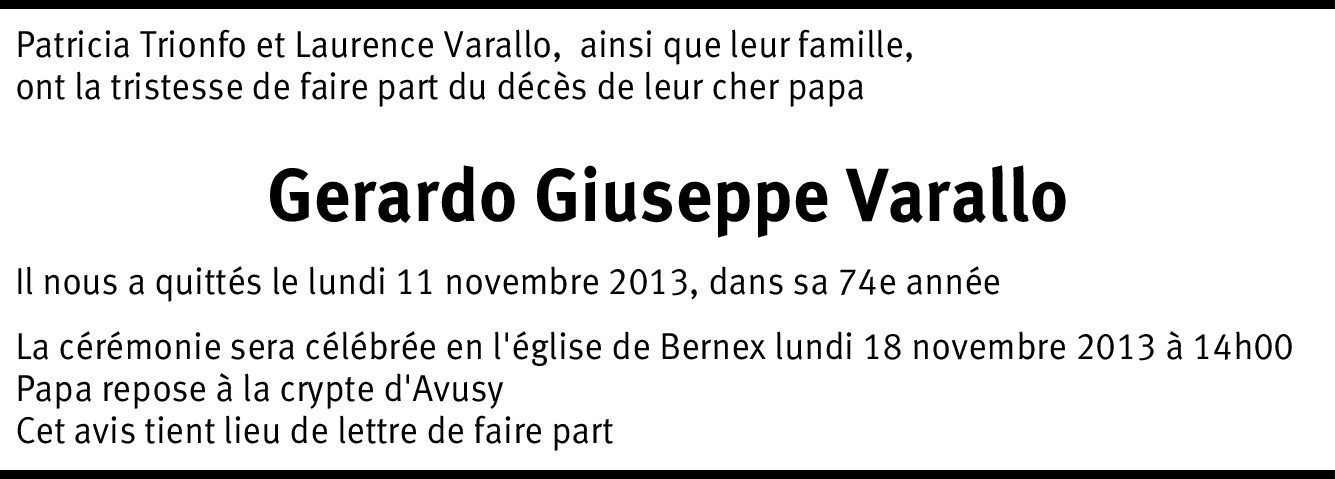 C'est avec beaucoup de tristesse que nous avons appris la mort de votre père. Gerardo était un homme très loyal, pendant 30 ans il a travaillé pour nous et jusqu'à la fin, parfois avec beaucoup de douleur, il est resté fidèle à son travail. Gerardo était un homme très sérieux et sincère. Nous pensons avec respect et gratitude à lui et nous vous souhaitons beaucoup de courage dans cette période difficile. Affection. Famille Saporta