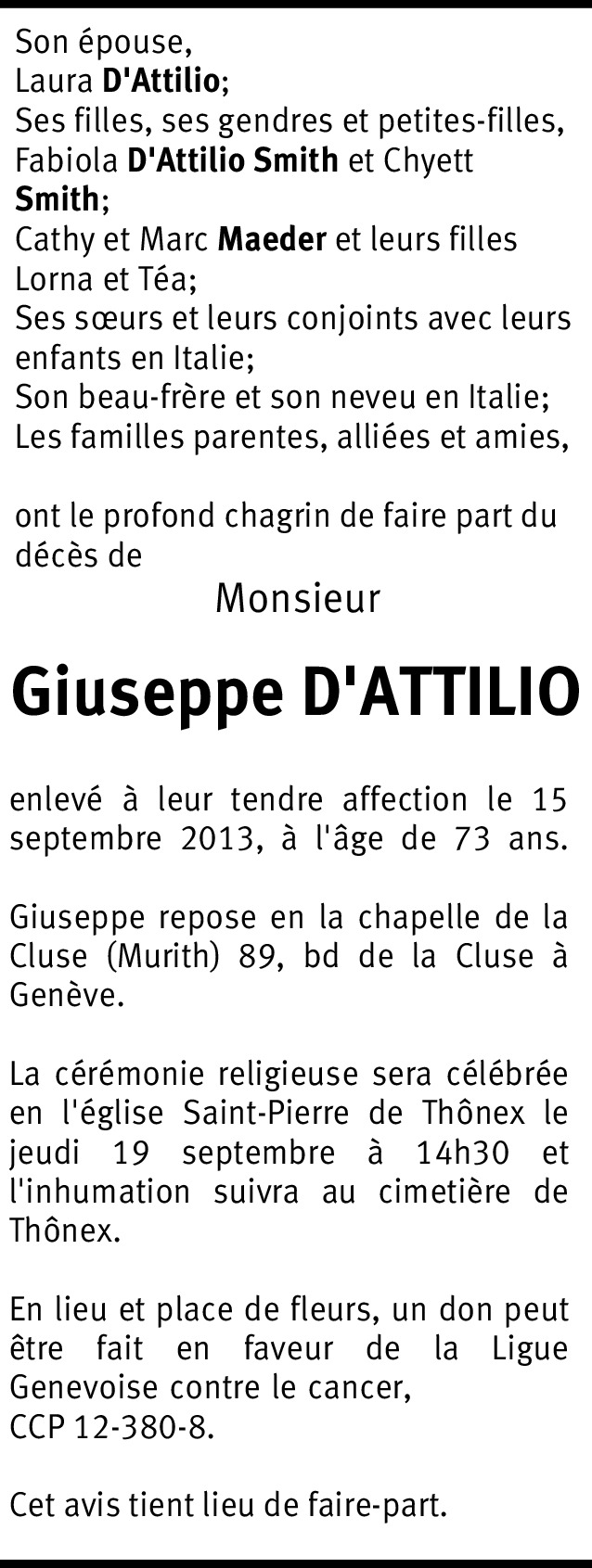 Vor mehr als 4 Jahren Melden Cara Laura, Fabiola e Cathy, appresa notizia del grave lutto che ha colpito la vostra famiglia, esprimo i sensi del più profondo cordoglio insieme a sentimenti di fraterna e cristiana solidarietà. Un caloroso abbraccio. Von Béatrice Schnider