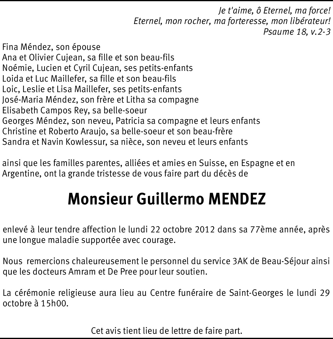 Recordamos a Guillermo con cariño y deseamos que el Señor os ayude y bendiga en estos momentos y siempre. Gracias a Dios por saber que él está muchísimo mejor, y por la esperanza de un día poder verle de nuevo, para siempre. Particularmente para su esposa Fina, que queda 'sola', el Señor dice: "estaré contigo; no te dejaré ni te abandonaré" (Jos 1:5). Timoteo y Beatriz