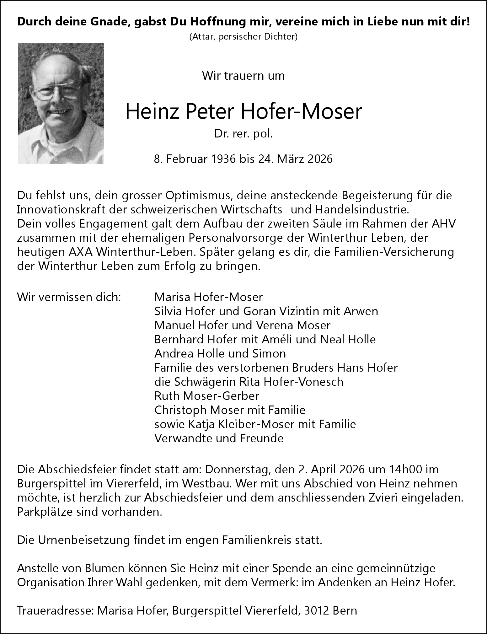 Möchten Sie über neue Todesanzeigen und Kondolenzen für diesen Verstorbenen informiert werden?