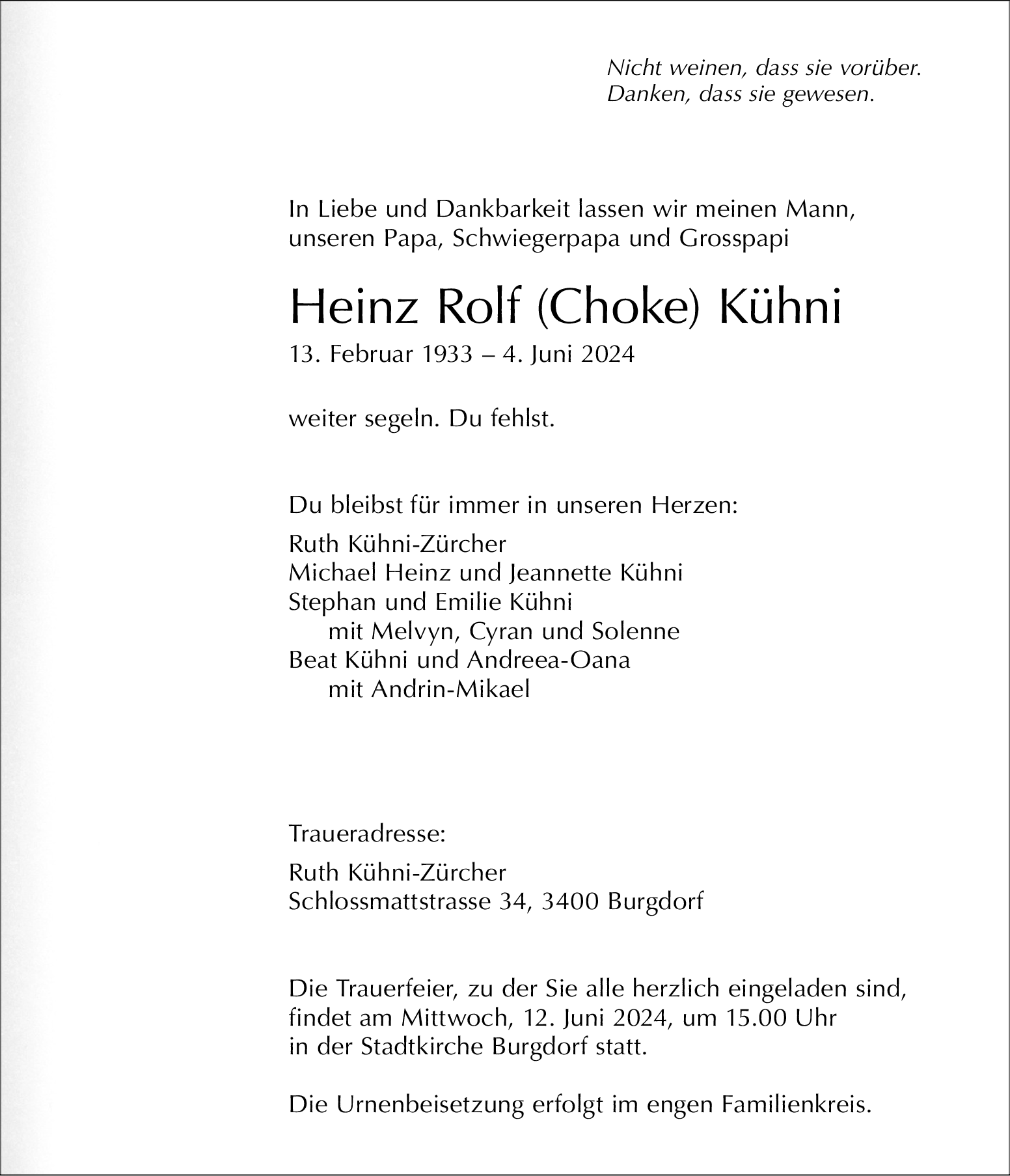 Möchten Sie über neue Todesanzeigen und Kondolenzen für diesen Verstorbenen informiert werden?