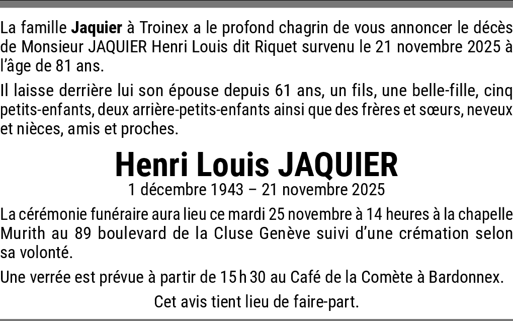 HENRI LOUIS JAQUIER