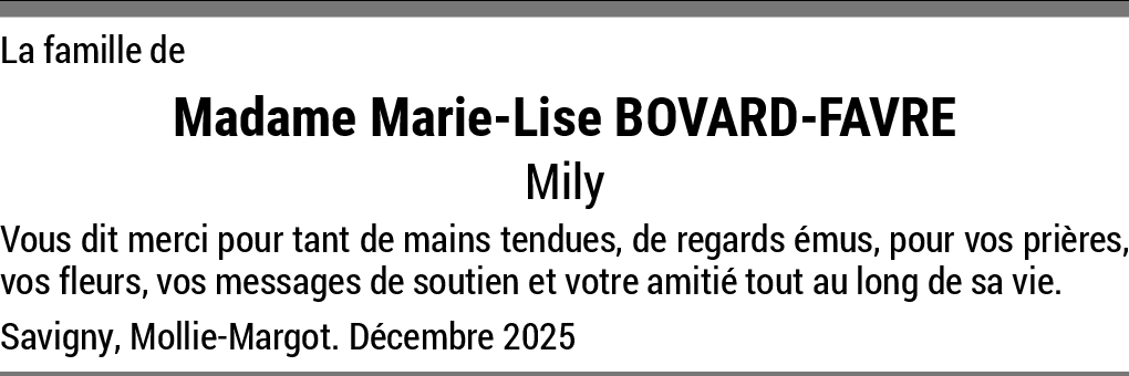 Chères familles en deuil 🕊 27.11.2025 Melden "Perdre un être cher est une épreuve difficile à surmonter. Mais sachez que nous sommes à vos côtés par la pensée pour vous soutenir. Nous vous témoignons notre affection et vous transmettons toute notre sympathie. Sincères condoléances. Von Floriane Bovey et son compagnon