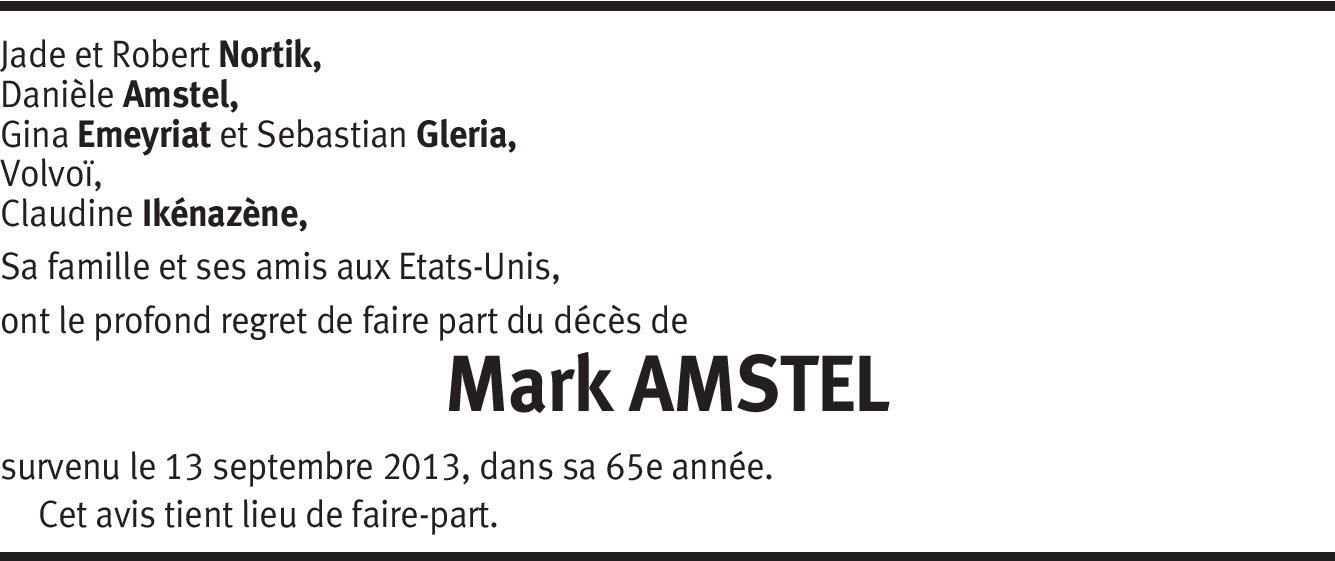 Mark, tu fus un bon copain lorsque, enfants, nous étions voisins. Tu avais une petite réputation de mauvais garçon qui te donnait un certain aura. Je me rappelle que tu adorais les animaux, à commencer par le vieux chien de ta mère, et que tu réparais mon vélomoteur en augmentant sa vitesse,au delà des 30 km/h légaux. On s'amusait bien et ta disparition me peine même si nous nous sommes perdus de vue depuis fort longtemps. Repose en paix.
