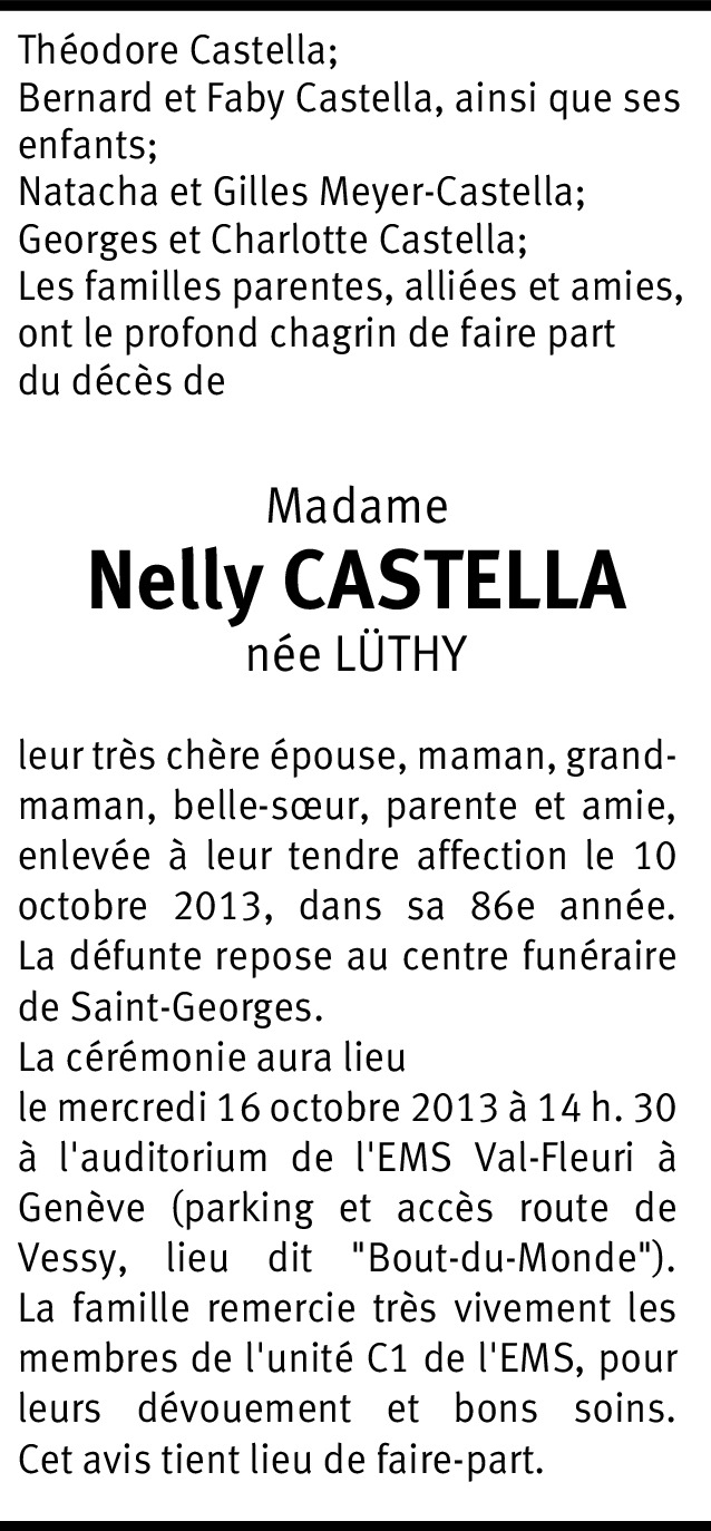 Par ce petit mot, nous tenons à exprimer toutes nos plus sincères condoléances à votre famille. Nous garderons de votre épouse et mère un très grand souvenir. Amitiés. Famille Maria et Jean-Charles Guinnard.