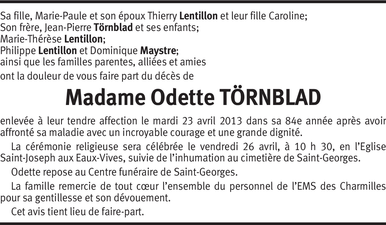 Vor mehr als 4 Jahren Melden Je viens malheureusement d'apprendre le décès de ta maman. Au nom des Dahus, je te présente nos sincères condoléances ainsi qu'à Thierry et ta famille. On ne t'a pas oubliée. Les Dahus Von Christian Von Roten