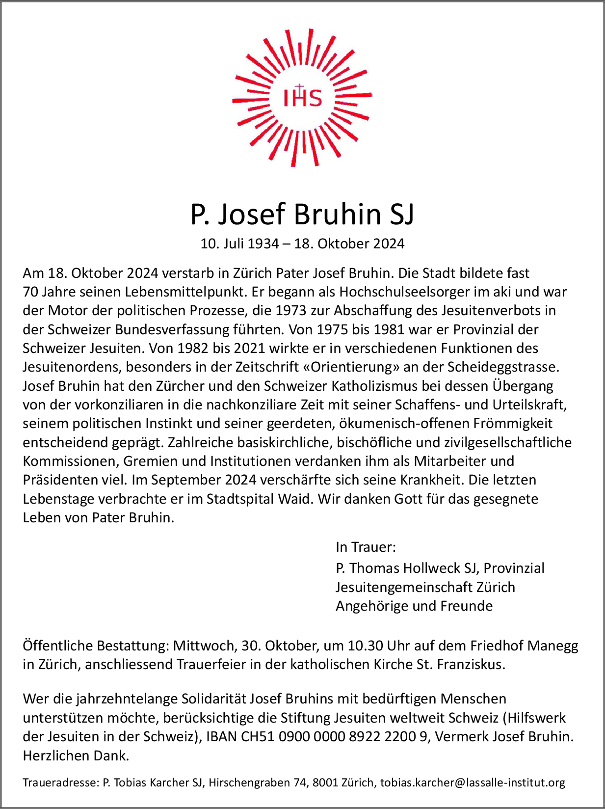 P. Josef Bruhin SJ