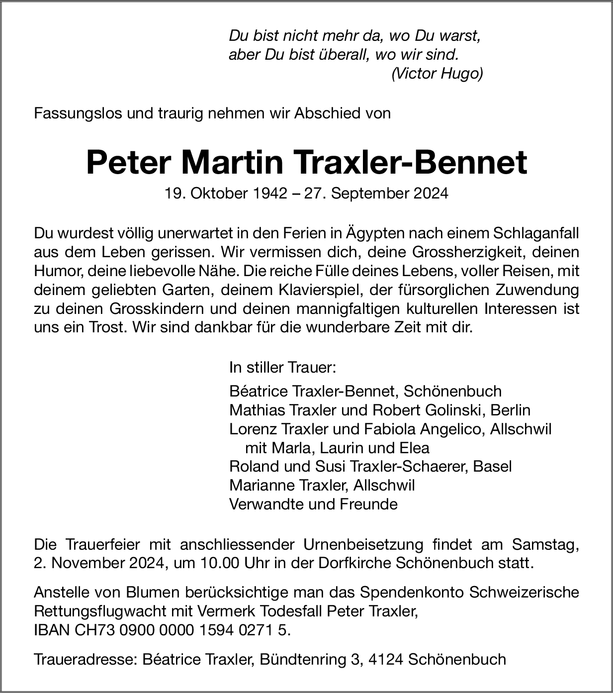 Möchten Sie über neue Todesanzeigen und Kondolenzen für diesen Verstorbenen informiert werden?