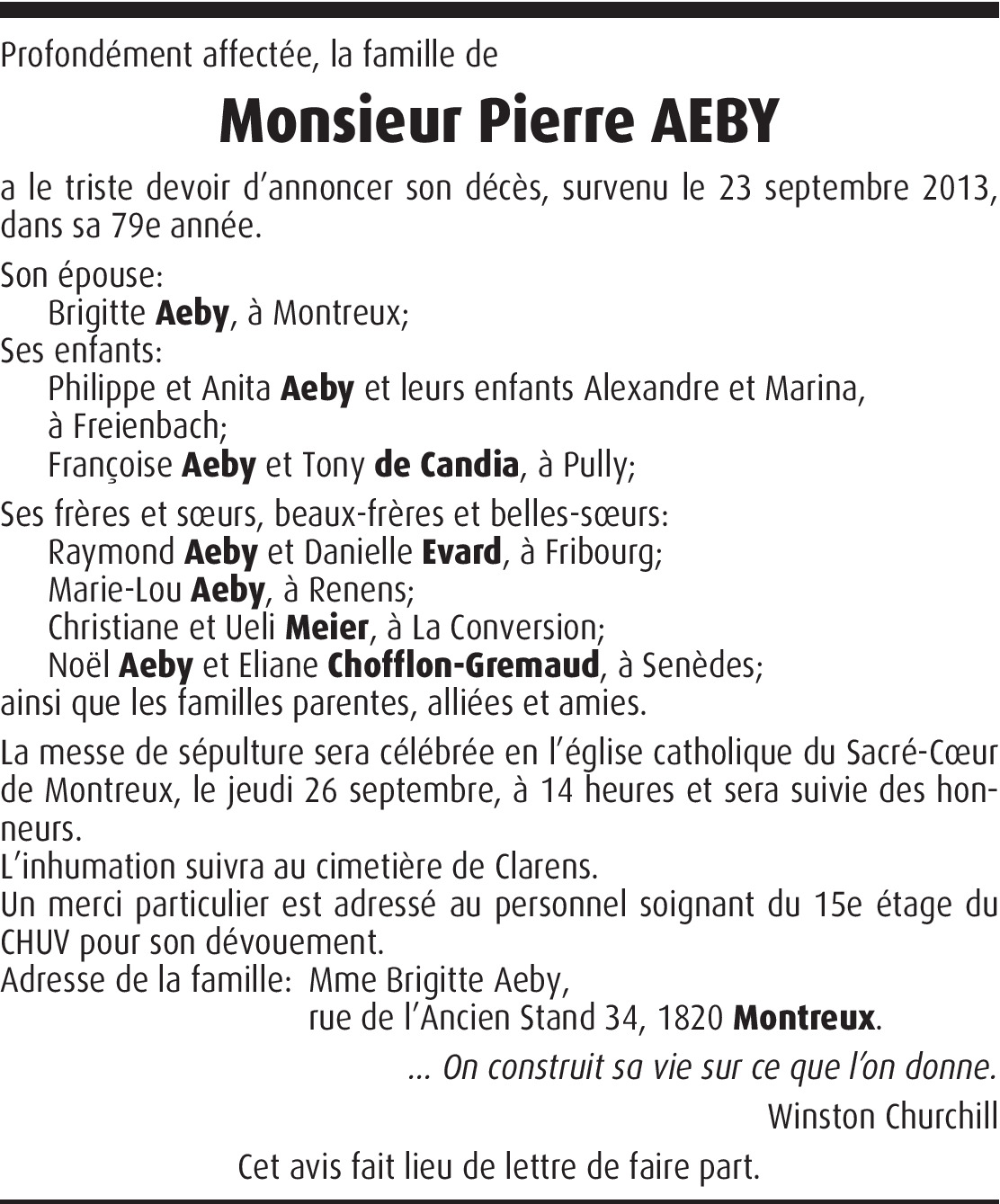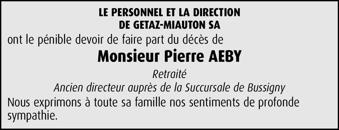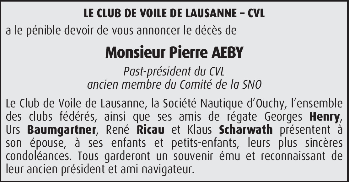A toute la famille Aeby, d'ici, et d'ailleurs, ce fut une terrible nouvelle qu'un membre aussi dévoué, nous quitte séance tenante, sans faire un crochet, sur un MSC ou Costa voyages.