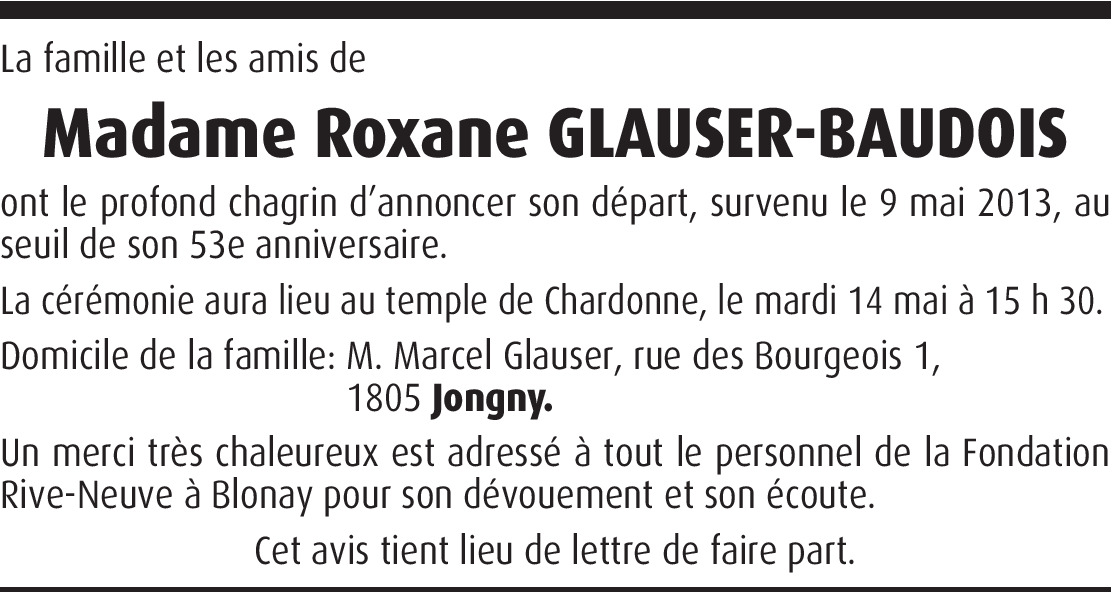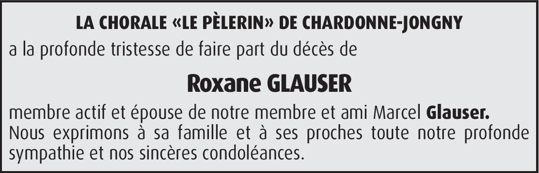 Nous sommes très touchés par la disparition de Roxane aussi subite à nos yeux. Nous tenons à vous témoigner notre profonde tristesse et sommes avec vous pour vous soutenir dans cette grande épreuve. Que le temps apaise votre immense chagrin, car Roxane jouit à présent de toute la lumière qu'elle a largement méritée. Bien à vous cher Marcel et famille. Philomène et Michel Chervet.