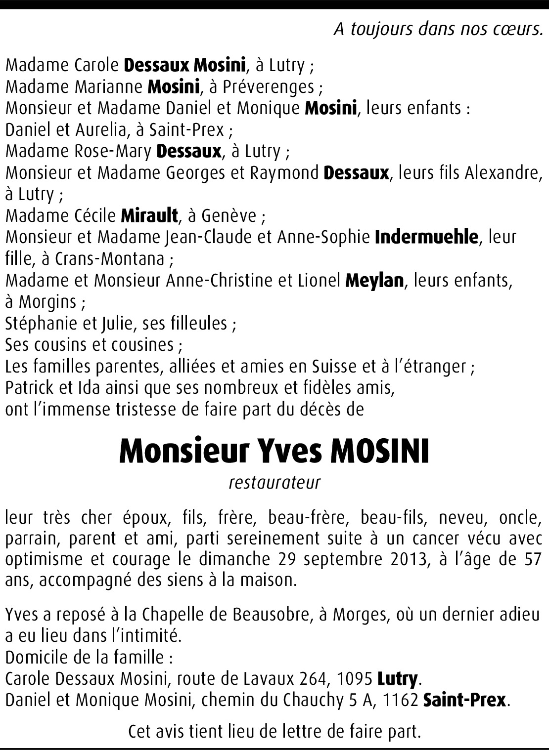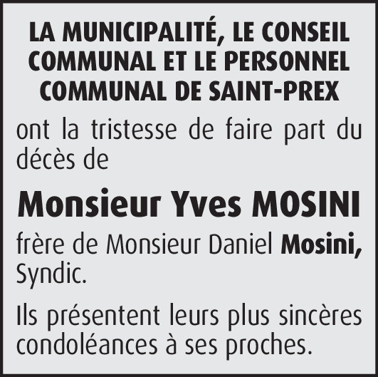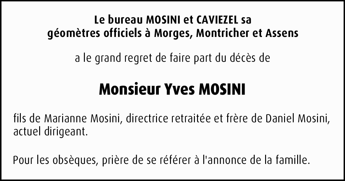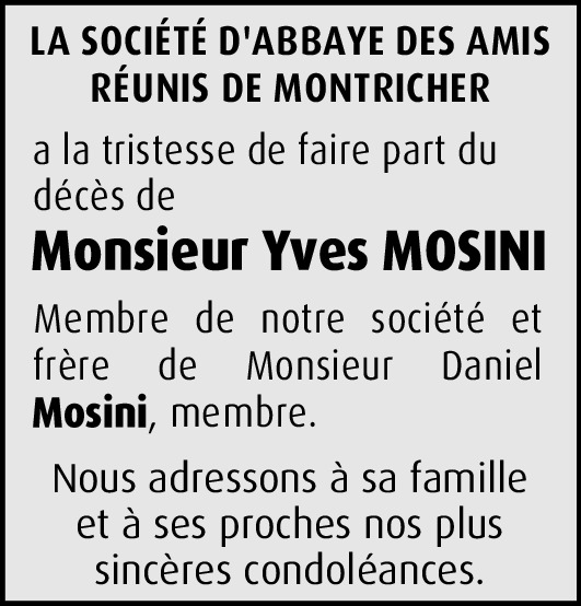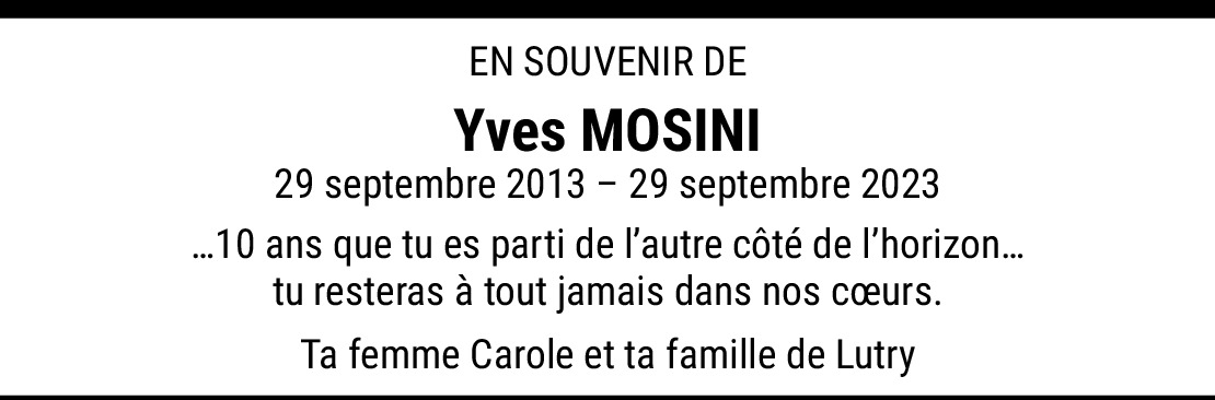 Yves, vous avez su être un bon ami et un bon patron.Votre âme restera toujours dans mon cœur, vous qui aimiez tellement votre métier.Mes condoléances les plus sincères à madame Mosini Marianne et à son neveu, nièce, belle sœur et frère Daniel Mosini.