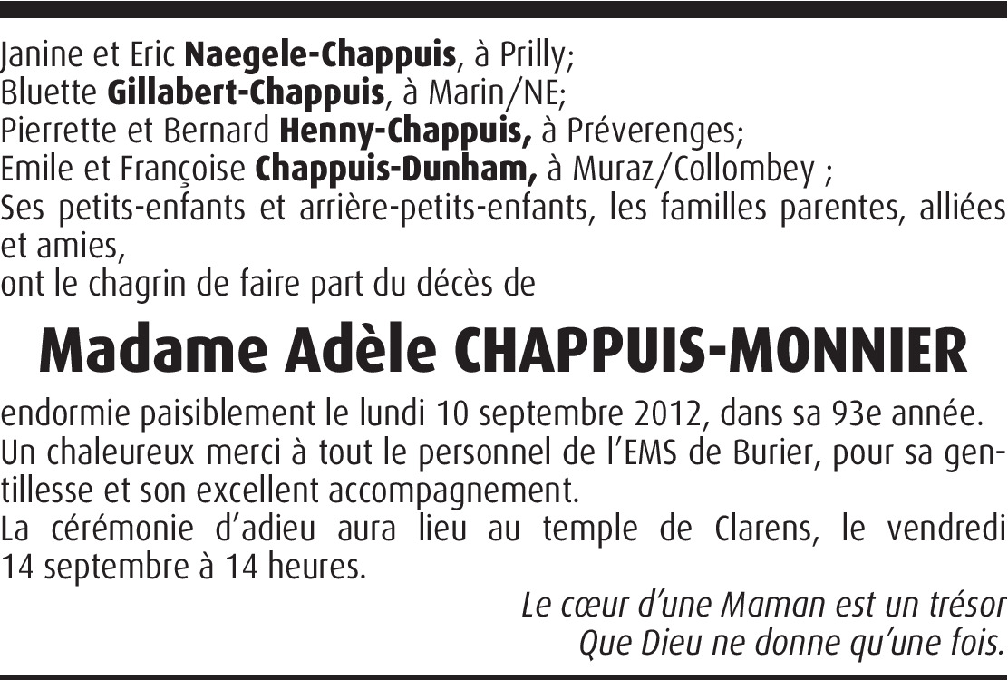Il y a plus de 4 ans Signaler Merci grand-maman pour tous ces moments passés ensemble, et repose en paix tu le mérites milles fois. De la part de Joel Gillabert