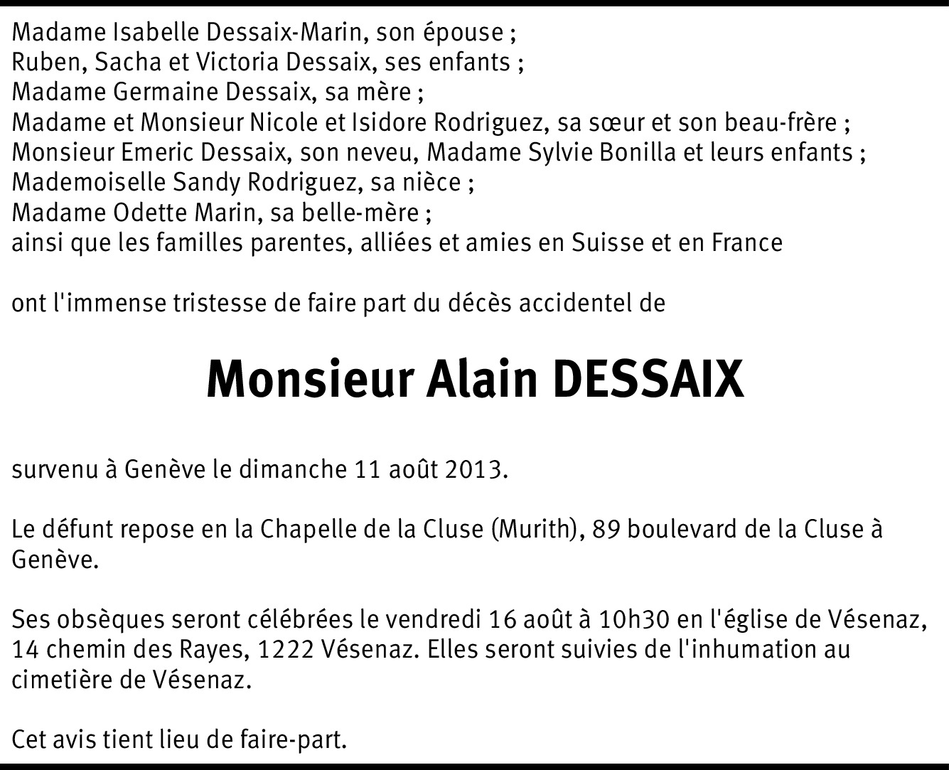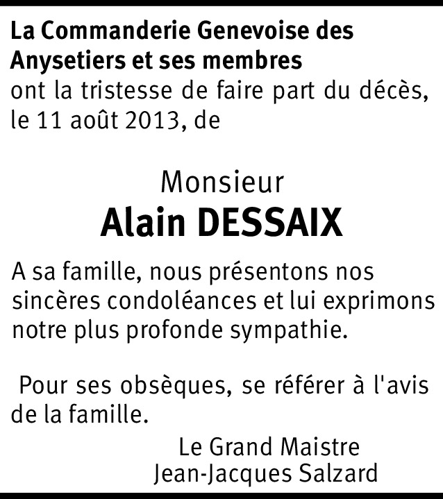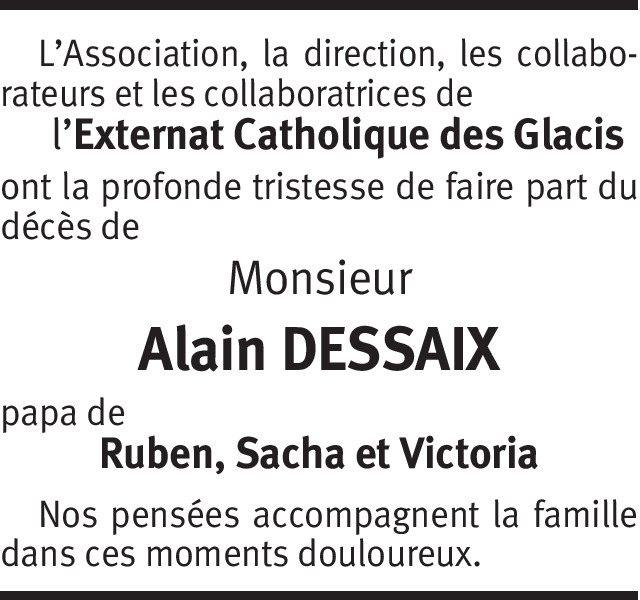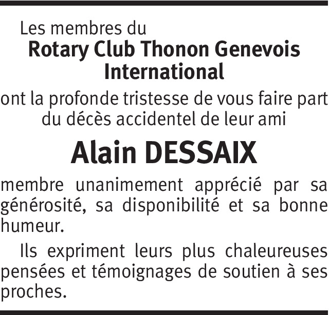 Chers Isabelle, Ruben, Sacha et Victoria Le départ d'Alain est un énorme choc pour Christine, Jenna et moi-même qui avaient passés tellement de bons moments ensembles... Bali restera toujours dans nos souvenirs ... les séances de travail pour créer un business même que nous n'étions pas toujours d'accord... Le Rotary... Les Fêtes de Genève avec les meilleures hamburgers du monde... je n'arrive pas à réaliser ce qu'il s'est passé!!! Je suis en séance demain en Valais et regrette de ne pas pouvoir être là demain... Christine sera présente avec vous. Bises à vous tous et n'oublie pas que nous sommes là si tu en as besoin. Erik Gangsted