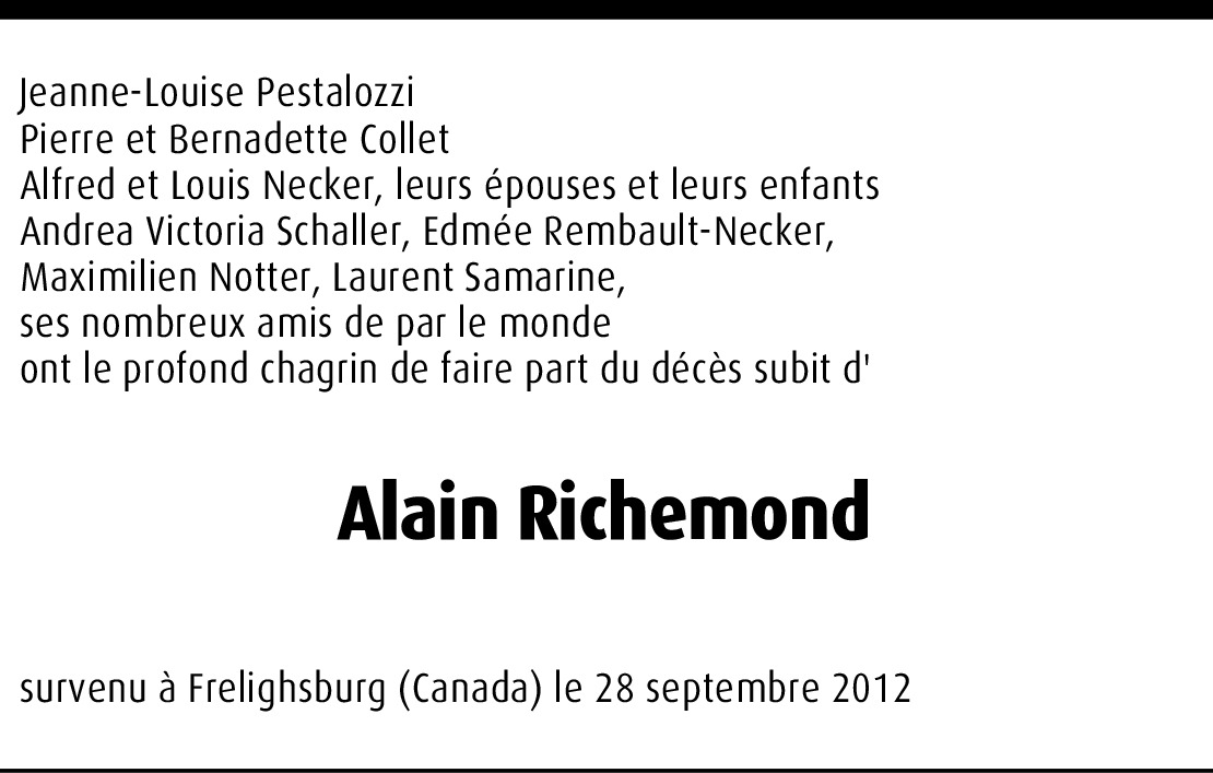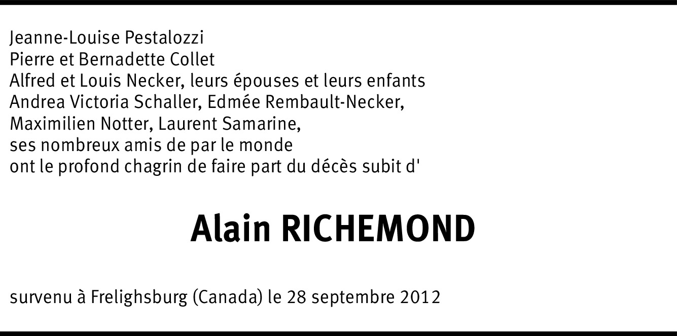 Profondément touchée par ce décès subit, M. Alain Richemond, fils de Mme Roussy représente pour moi le dernier lien avec sa mère à laquelle mon mari Dimitry Markevitch & moi-même, nous étions proches. Respectueusement, Gitta Markevitch.
