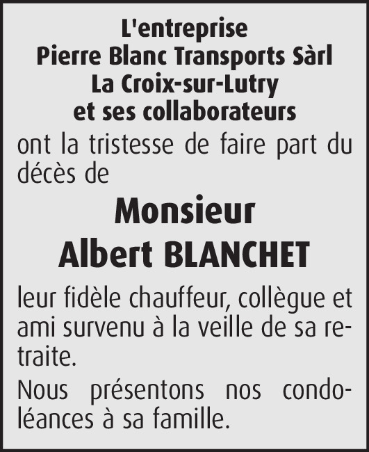 Il y a plus de 4 ans Signaler Mes sincères condoléances à la famille d'Albert. Albert était un ami super sympa et attentionné, il me manquera beaucoup. Dany. De la part de Dany Mme Richard