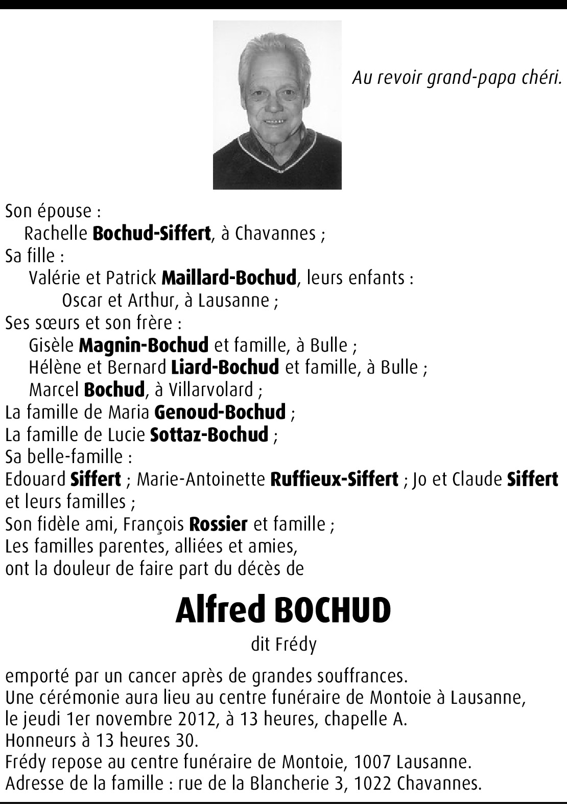 Mes sincères condoléances à toi et ta famille Valérie. Même si nous nous sommes "perdues de vues" depuis notre apprentissage chez Baumgartner, je pense souvent à toi. Toute mon amitié. Evelyne