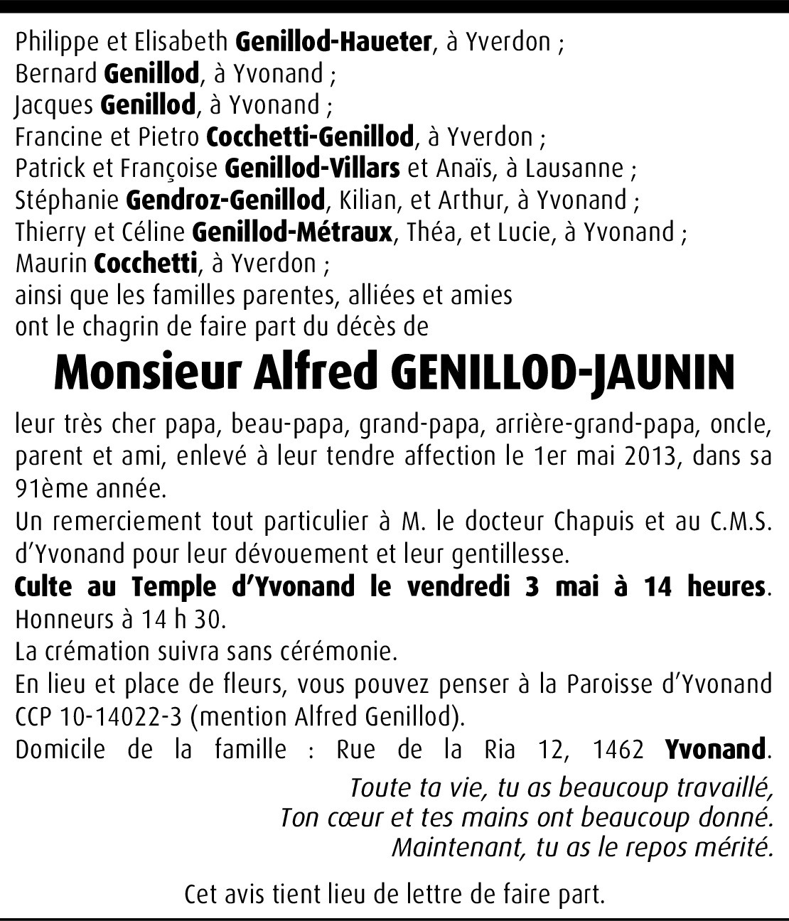 Vous souhaitez rester informé des nouveaux avis et condoléances pour ce défunt ?