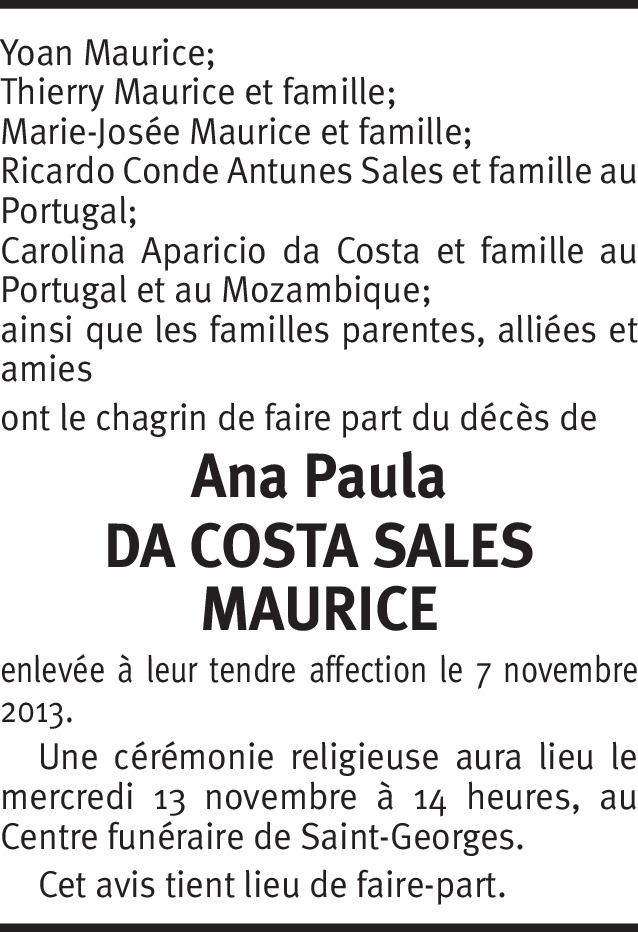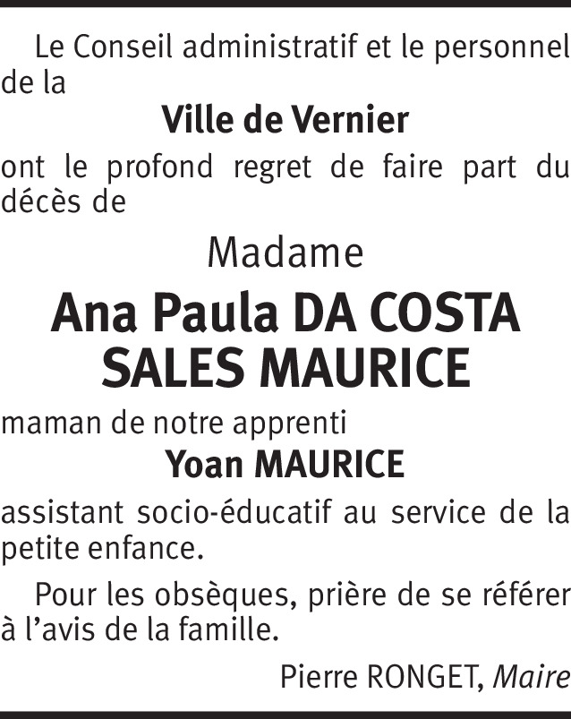 Ana Paula Da Costa Sales Maurice